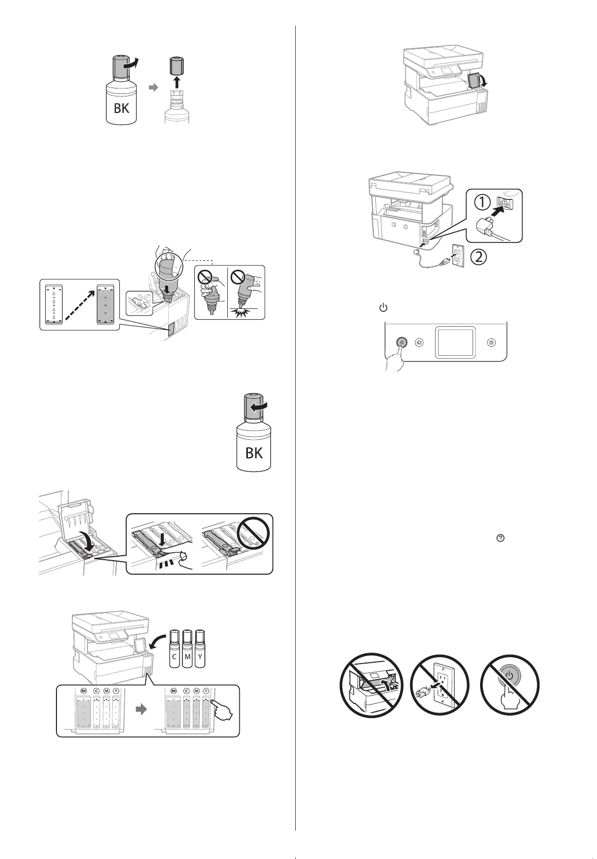 Caution: Do not shake or squeeze the ink bottle. Do not touch