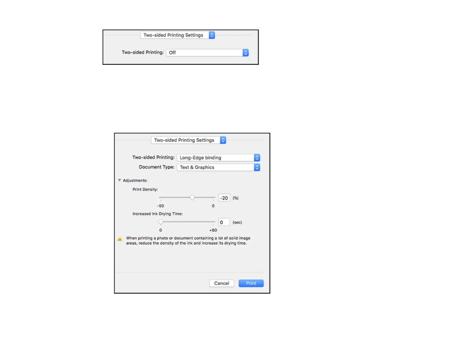 1. Select one of the Two-sided Printing options.