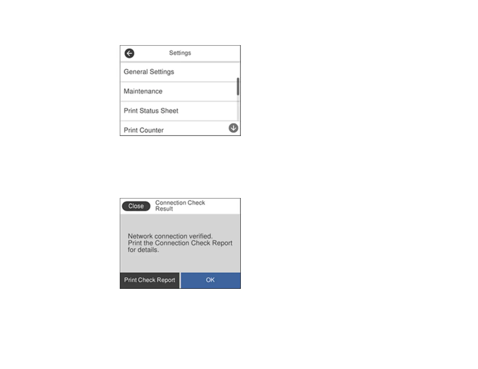 7. Select Print Check Report to print the network connection report.