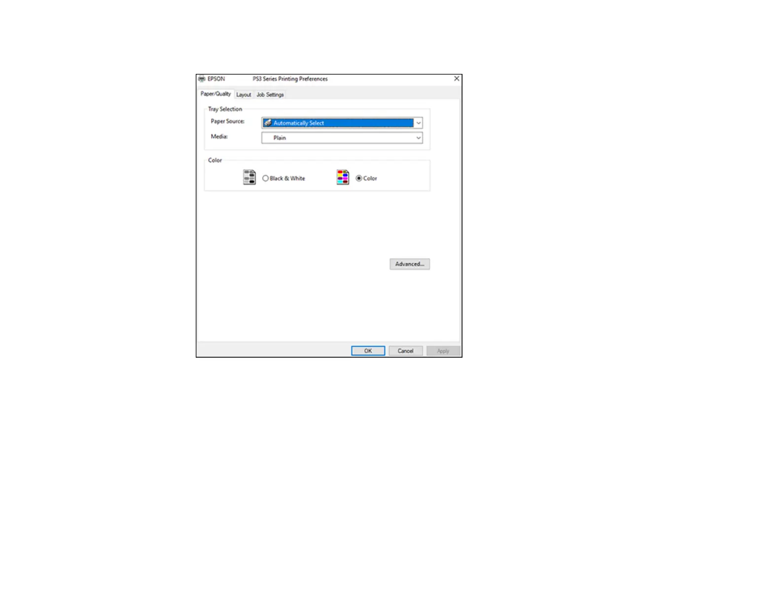7. To select additional layout and printing options, select Advanced and select additional settings as