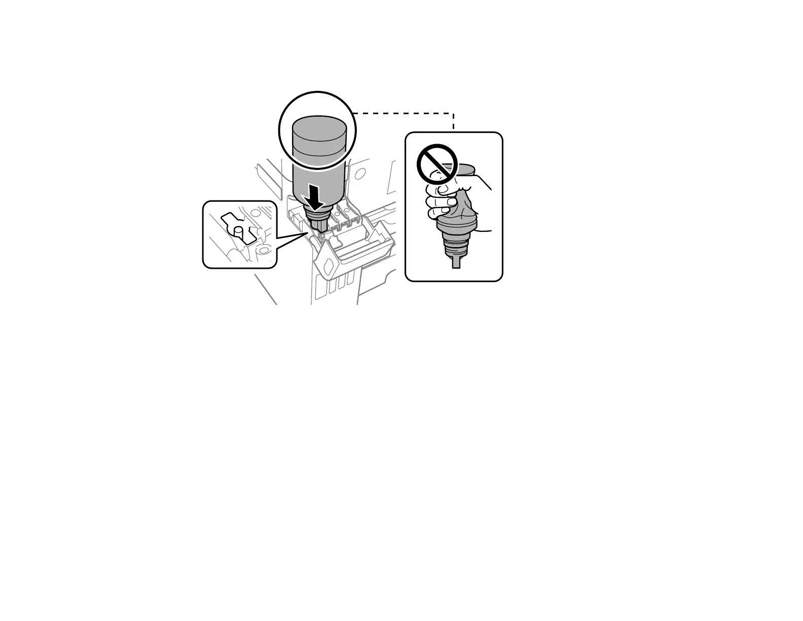 Note: If ink does not flow from the bottle, lift and reinsert the bottle.