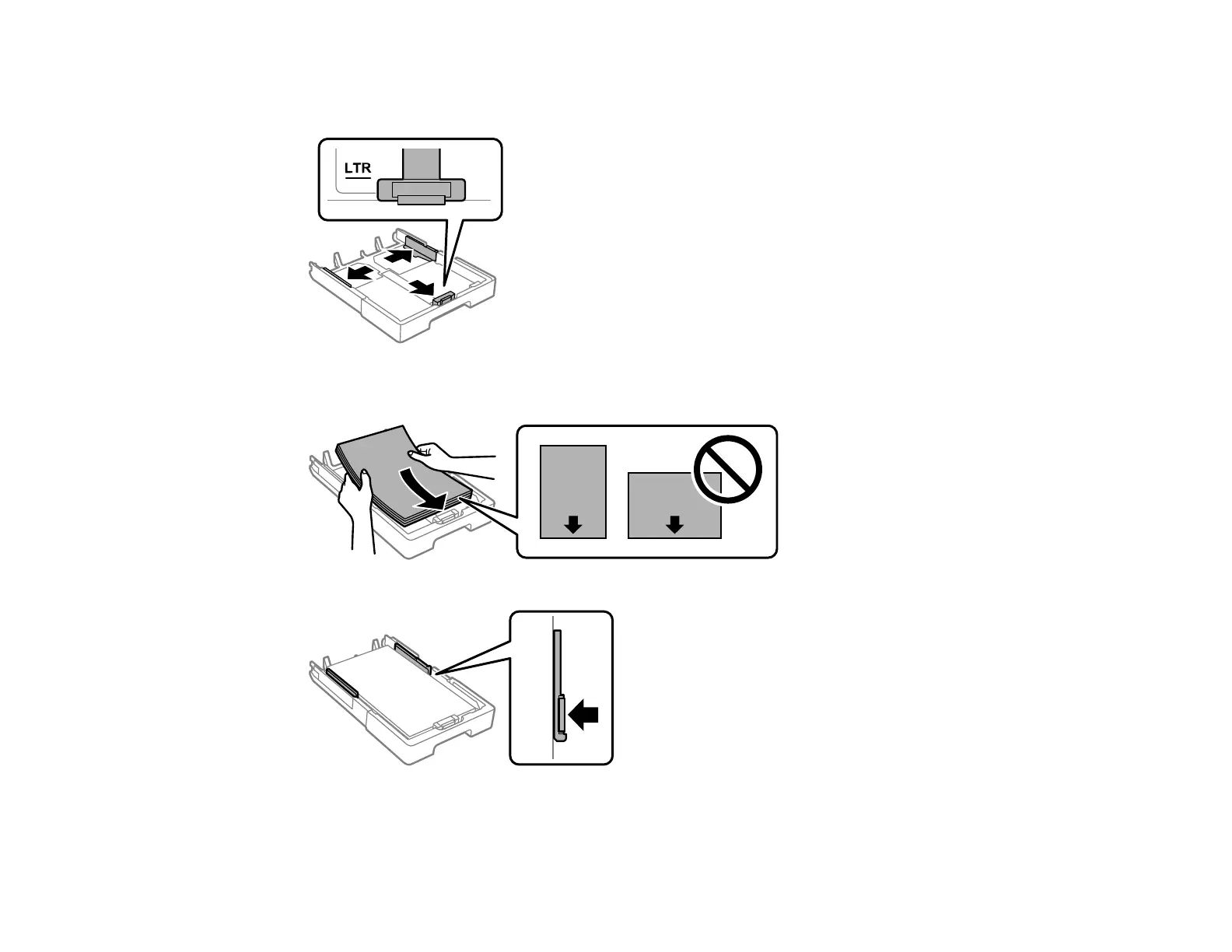 Note: Make sure the paper fits beneath the arrow mark inside the edge guides.