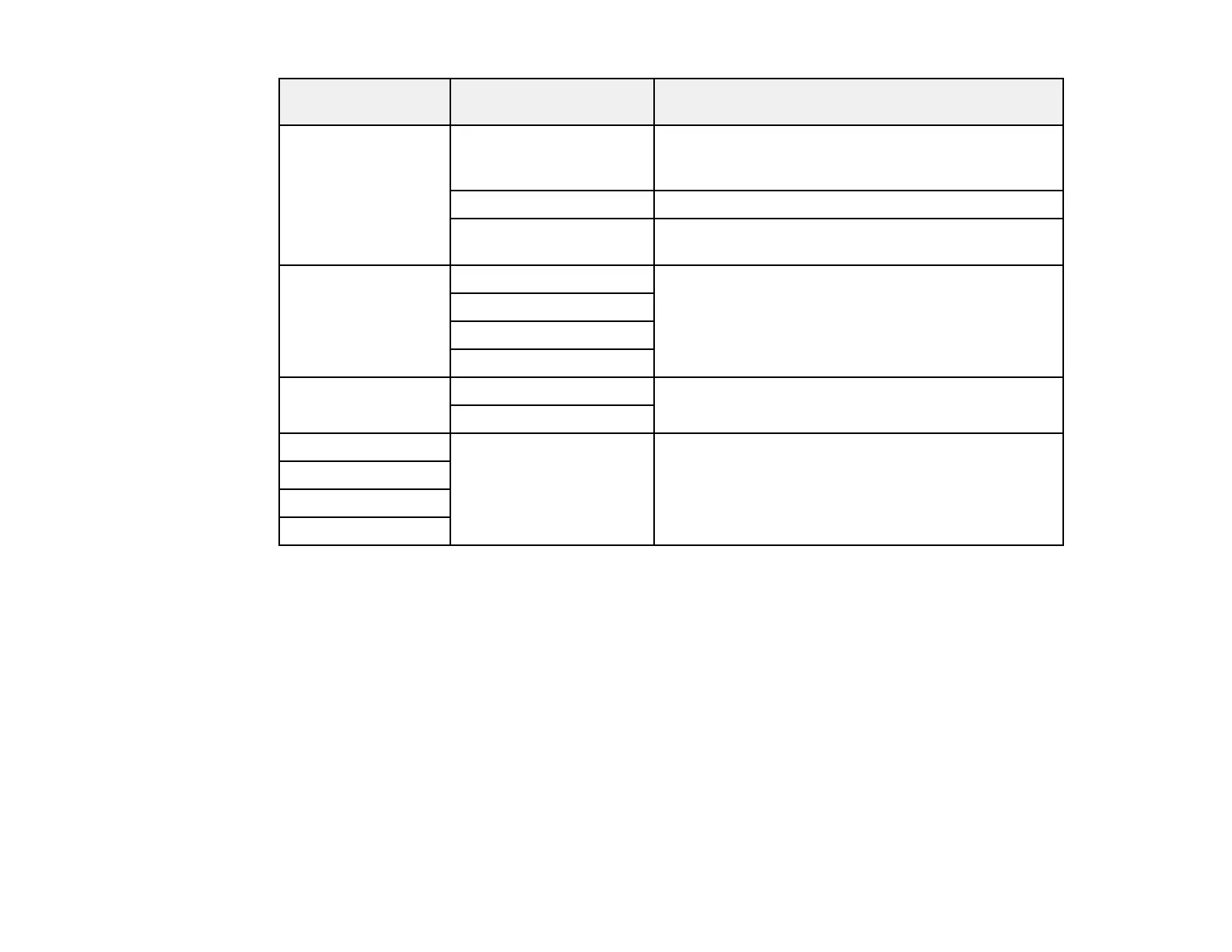 Available options Description