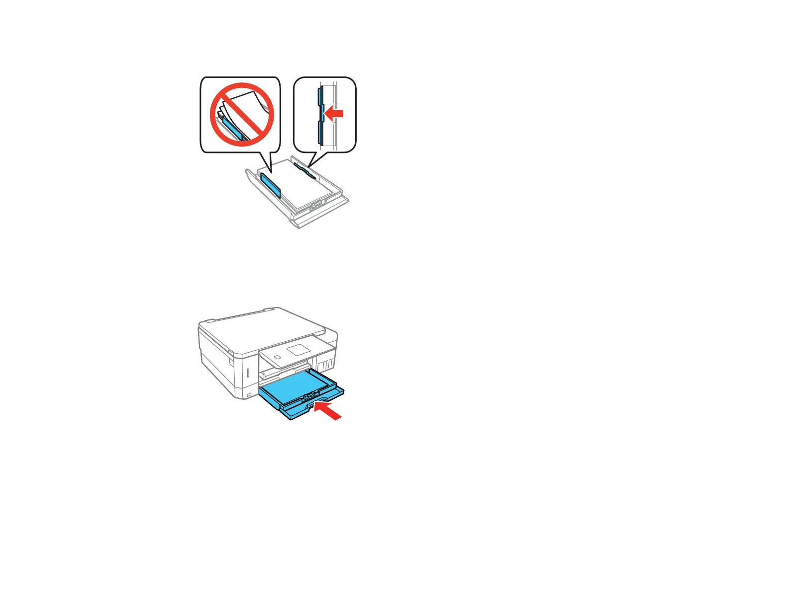 Note: Make sure the paper fits under the tabs on the edge guides.