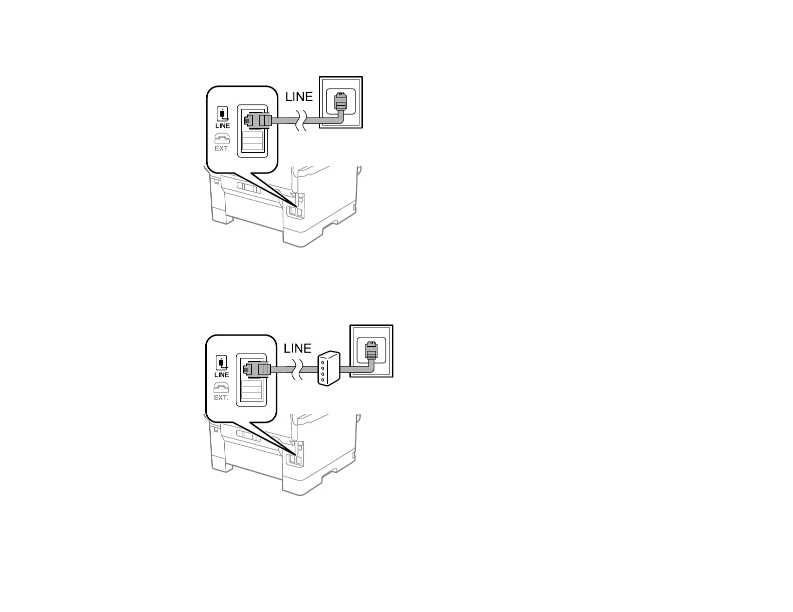 1. Connect a phone cable to your telephone wall jack and to the LINE port on your product.