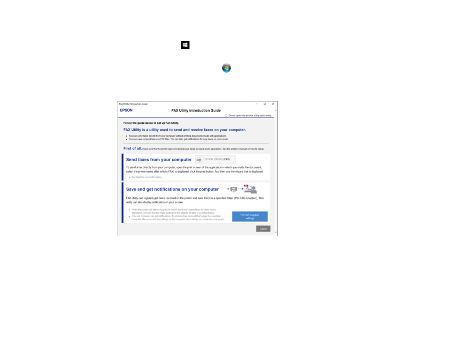 3. Read about the FAX Utility and click Close at the bottom of the window.