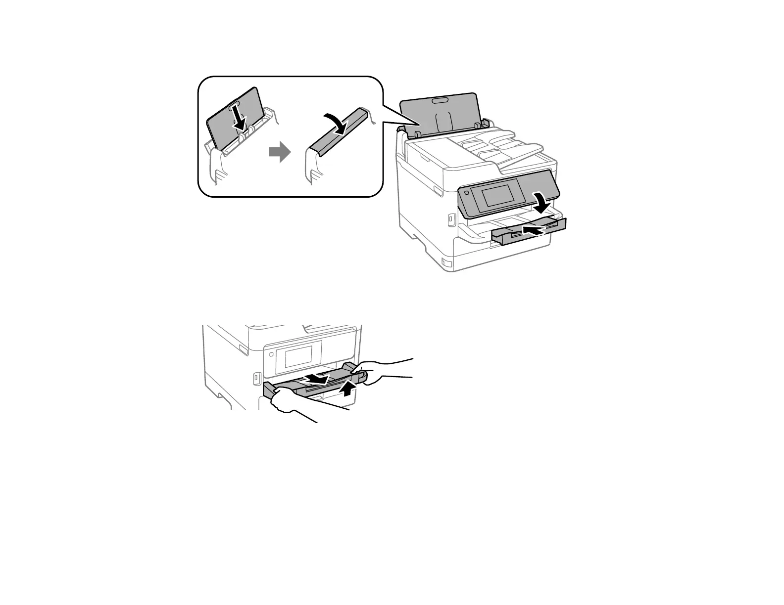 10. Close the rear paper feed slot and output tray and lower the control panel.