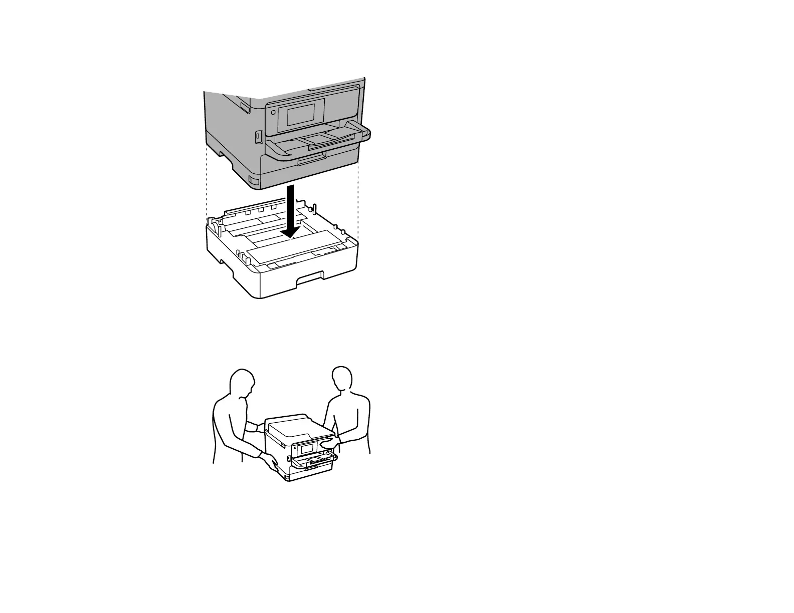 3. Lift up your product and gently lower it onto the paper cassette unit with the corners aligned.