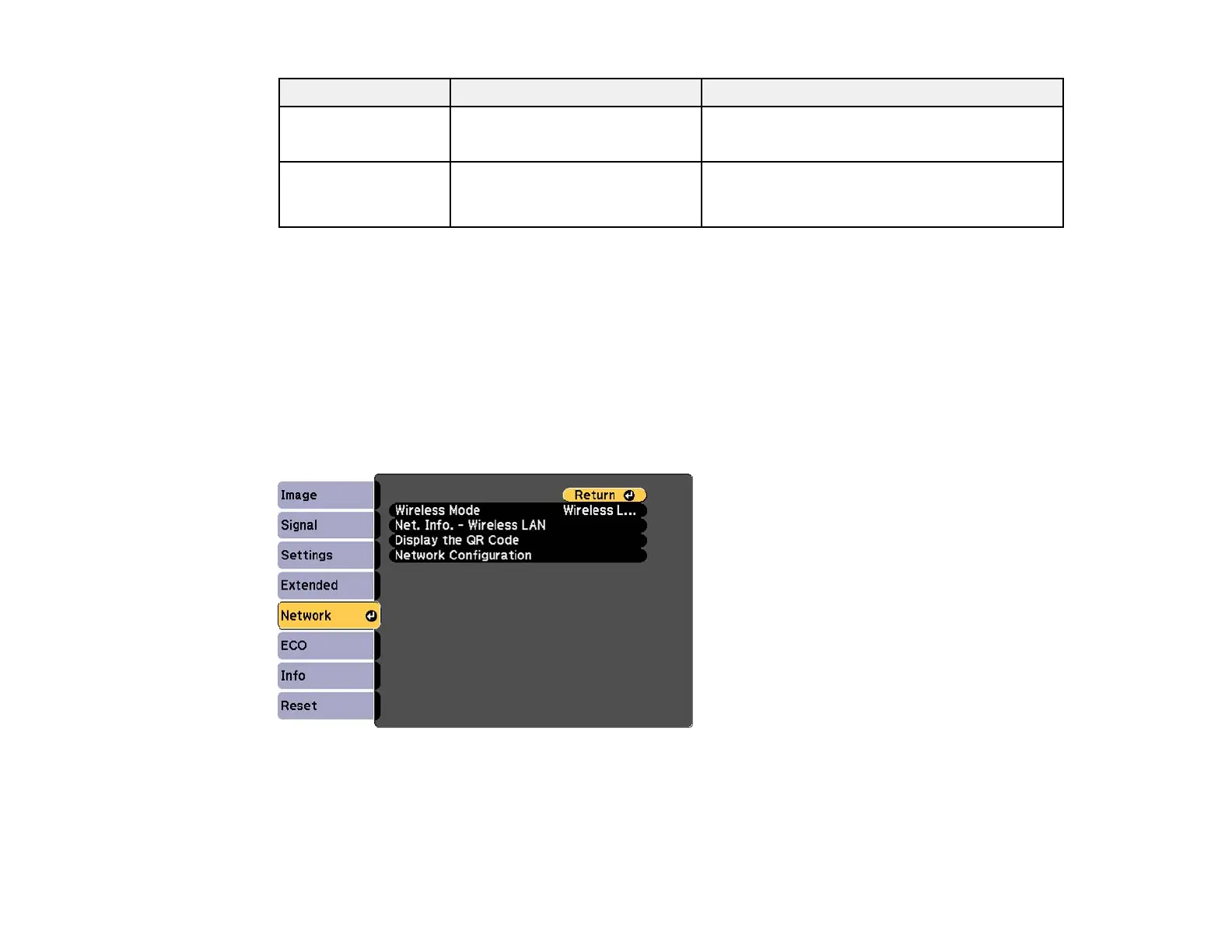 Settings on the Network menu let you view network information and set up the projector for monitoring