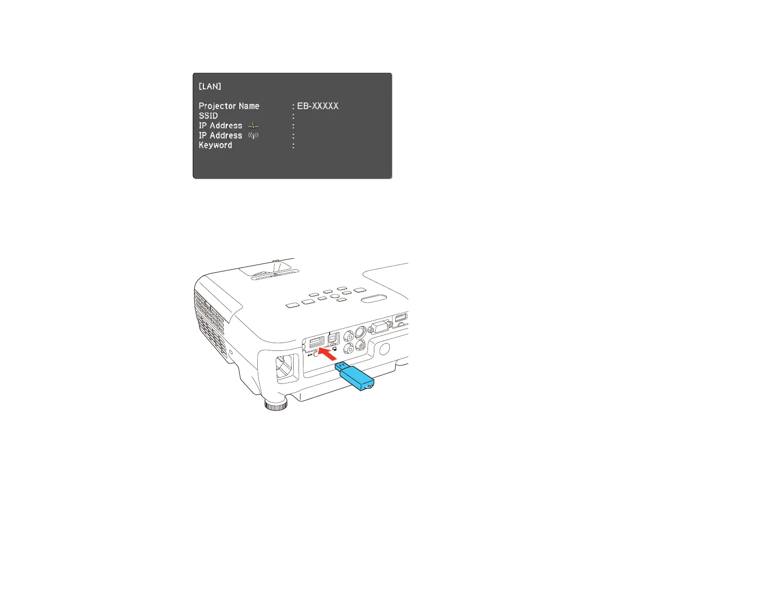 4. Insert the Quick Wireless Connection USB key into the same port used for the wireless LAN module.