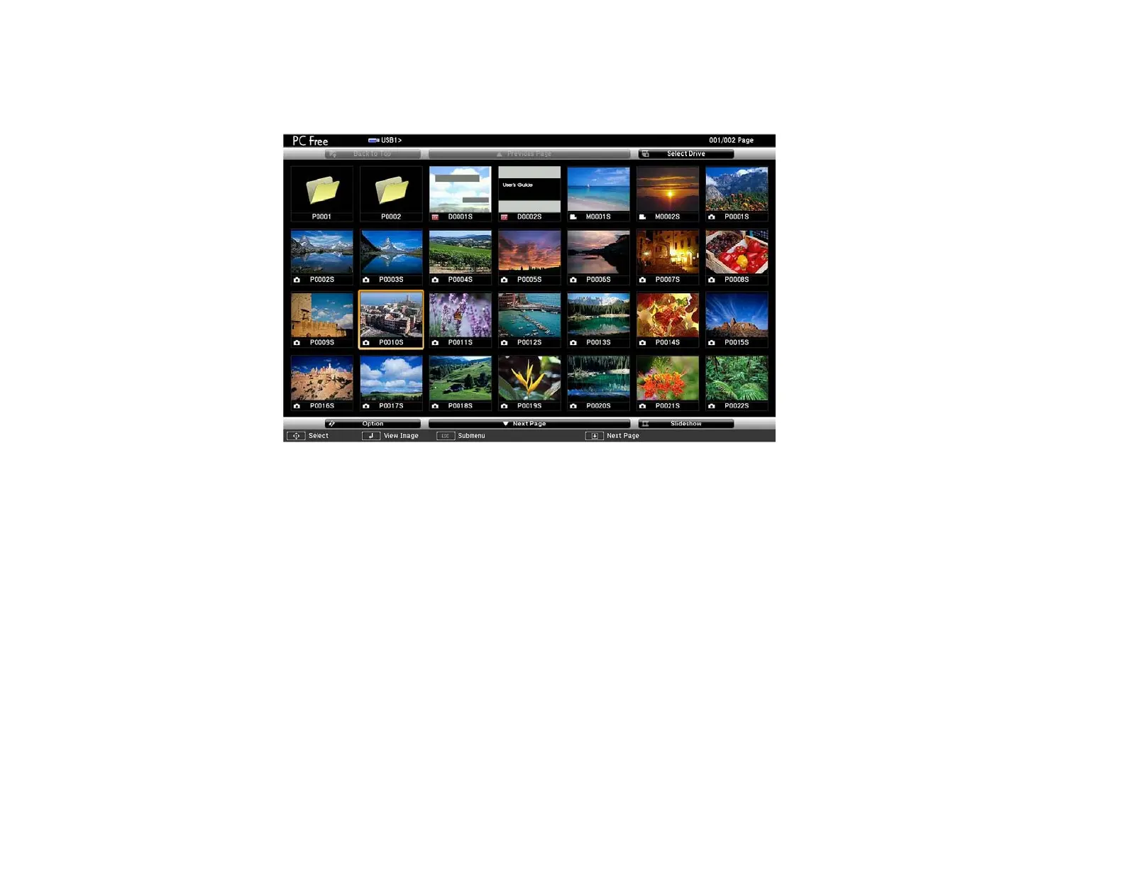 If you need to display files inside a subfolder on your device, press the arrow buttons to highlight