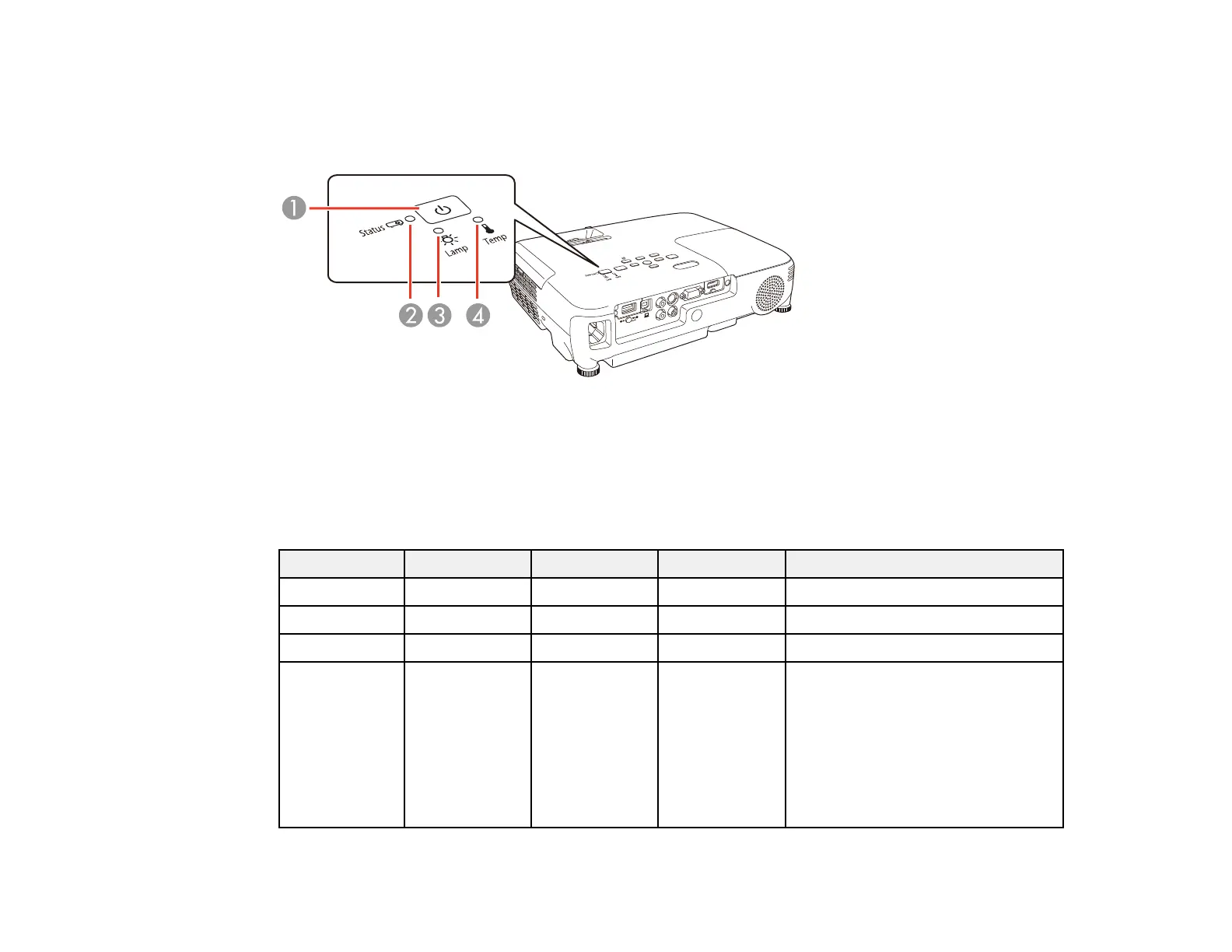 The lights on the projector indicate the projector status and let you know when a problem occurs. Check