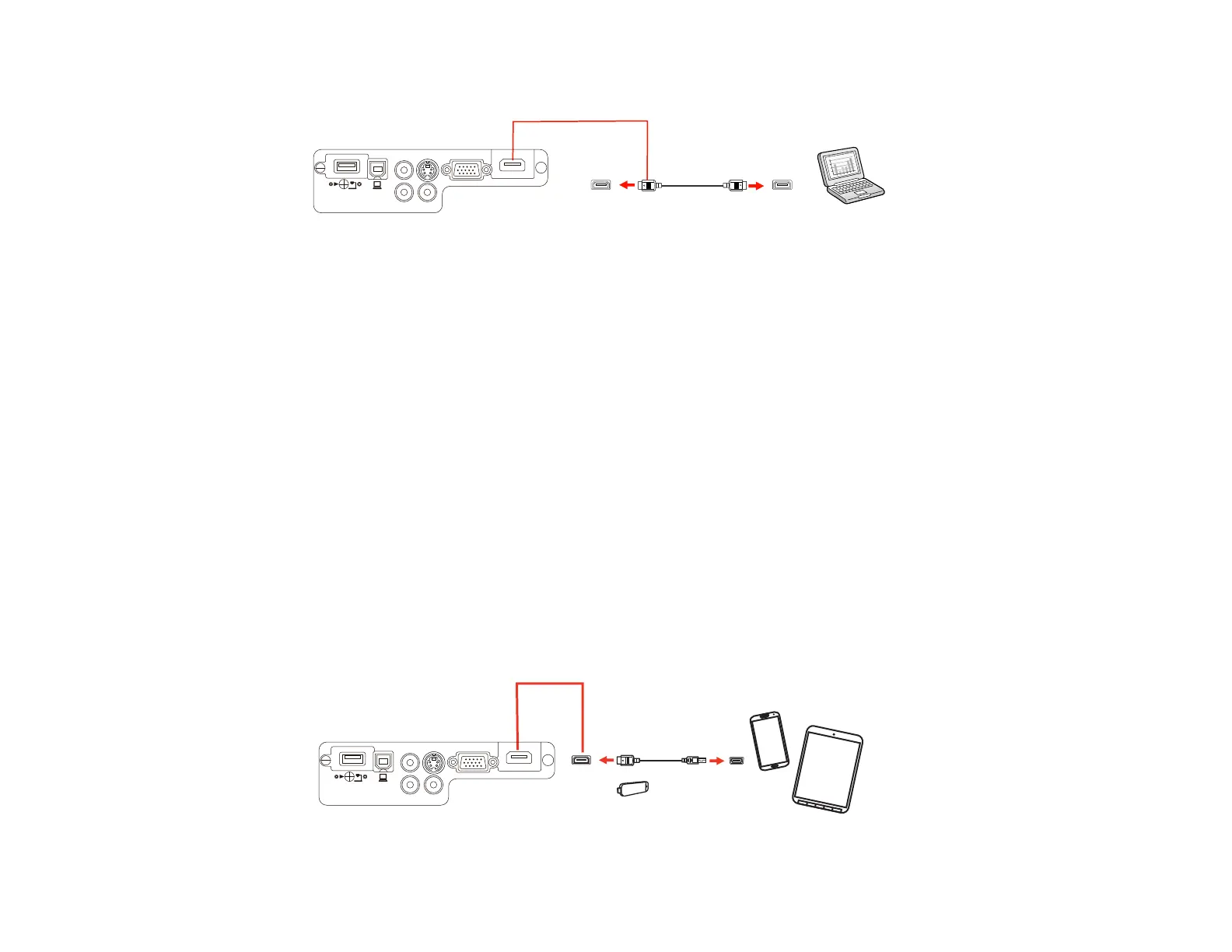 If you have an MHL-compatible smartphone or tablet, you can connect it to the projector using either an