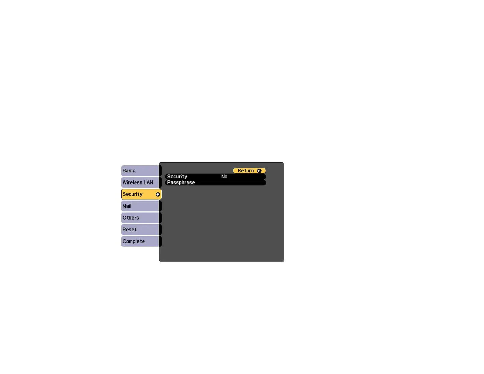 You can set up security for your projector to use on the wireless network. Set up one of the following