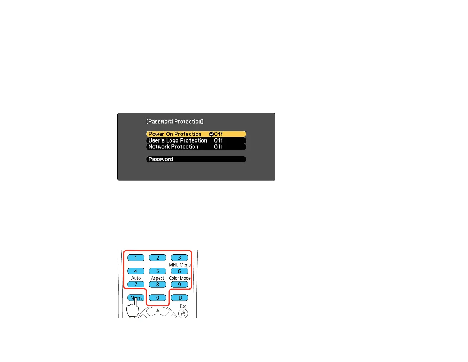4. Press and hold down the Num button on the remote control and use the numeric buttons to set a