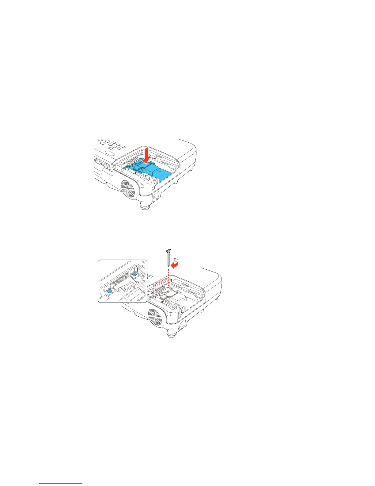 7. Gently insert the new lamp into the projector. If it does not fit easily, make sure it is facing the right