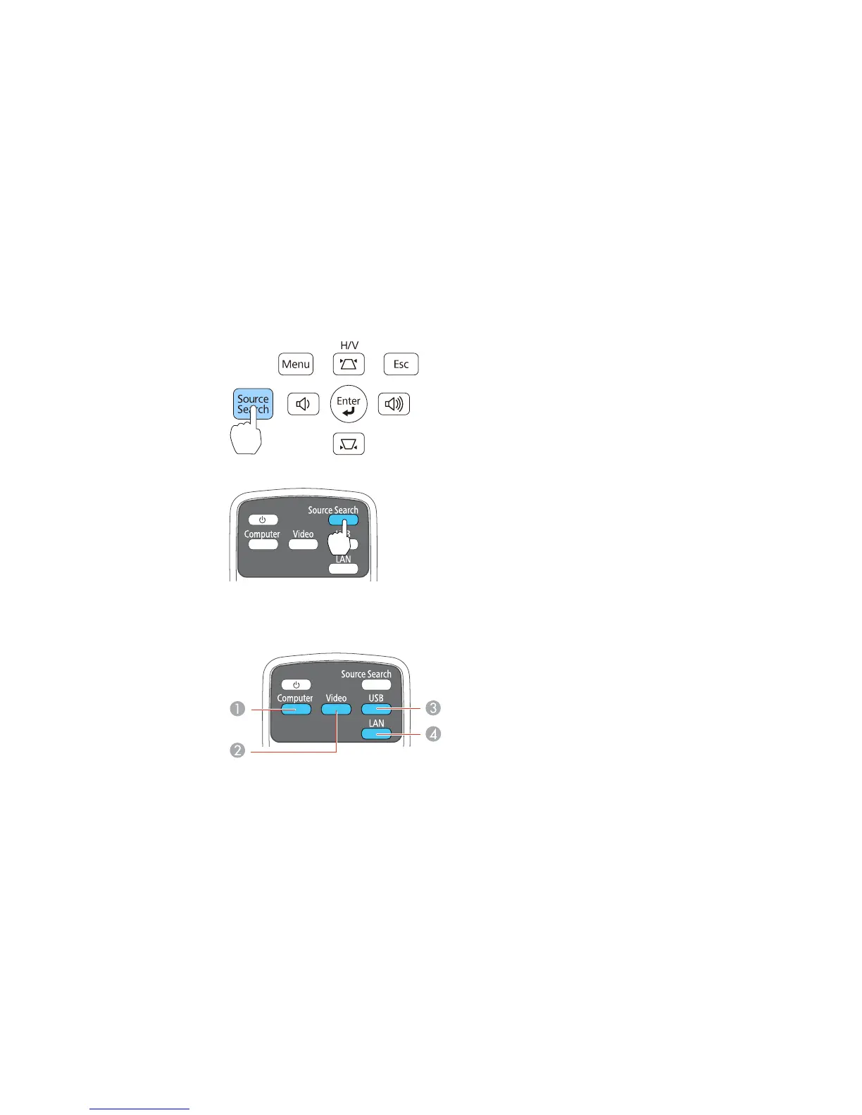 Press the Source Search button on the projector or remote control until you see the image from