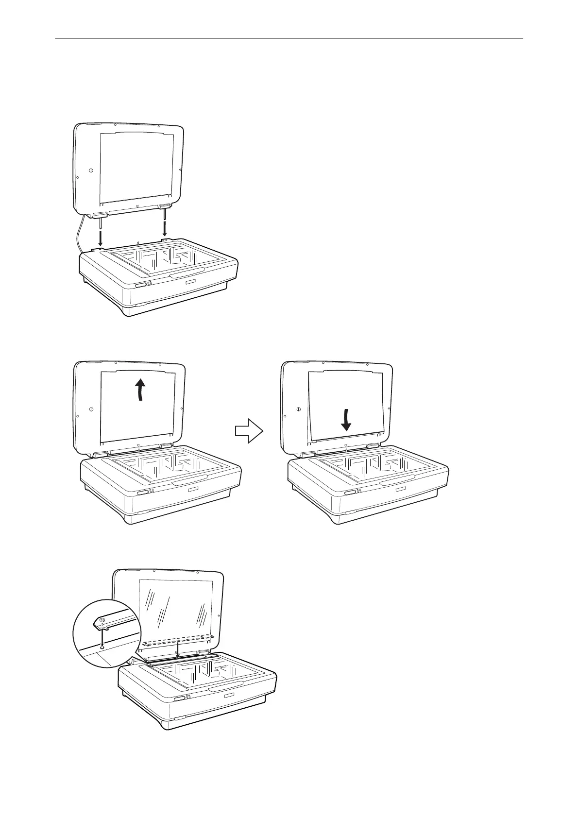 3. Align the pins of the unit with the holes of the scanner, and then lower the unit until it rests securely on the