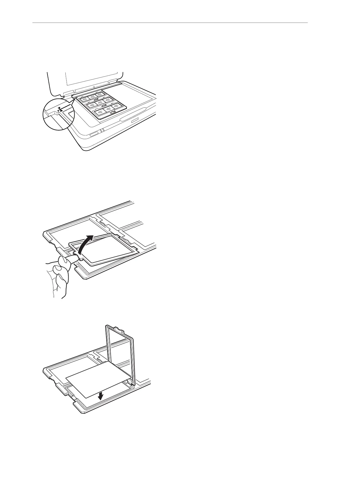 4. Place the film holder on the scanner glass and align it with the notch on the transparency guide, as shown