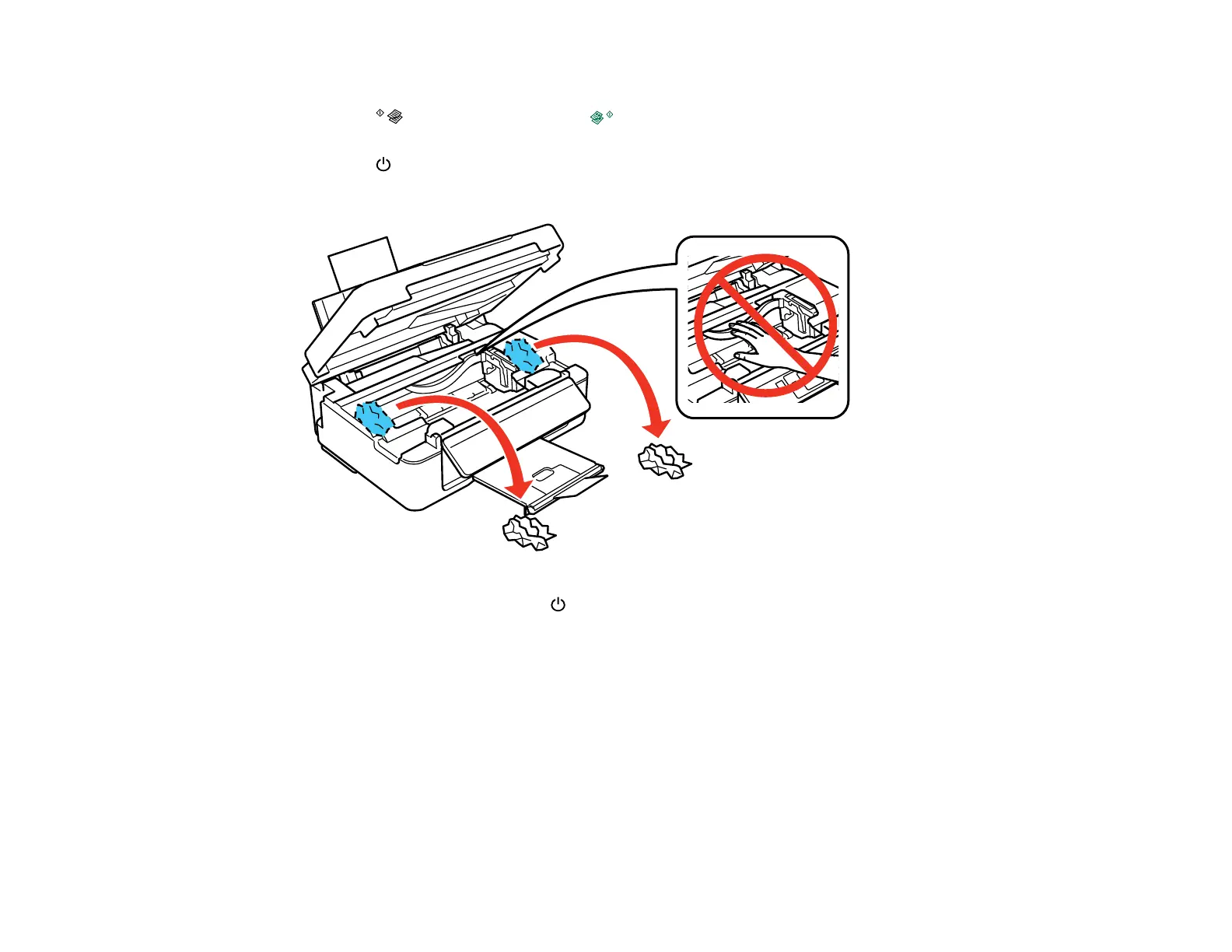 5. Lift the scanner, remove the jammed paper and any torn pieces.