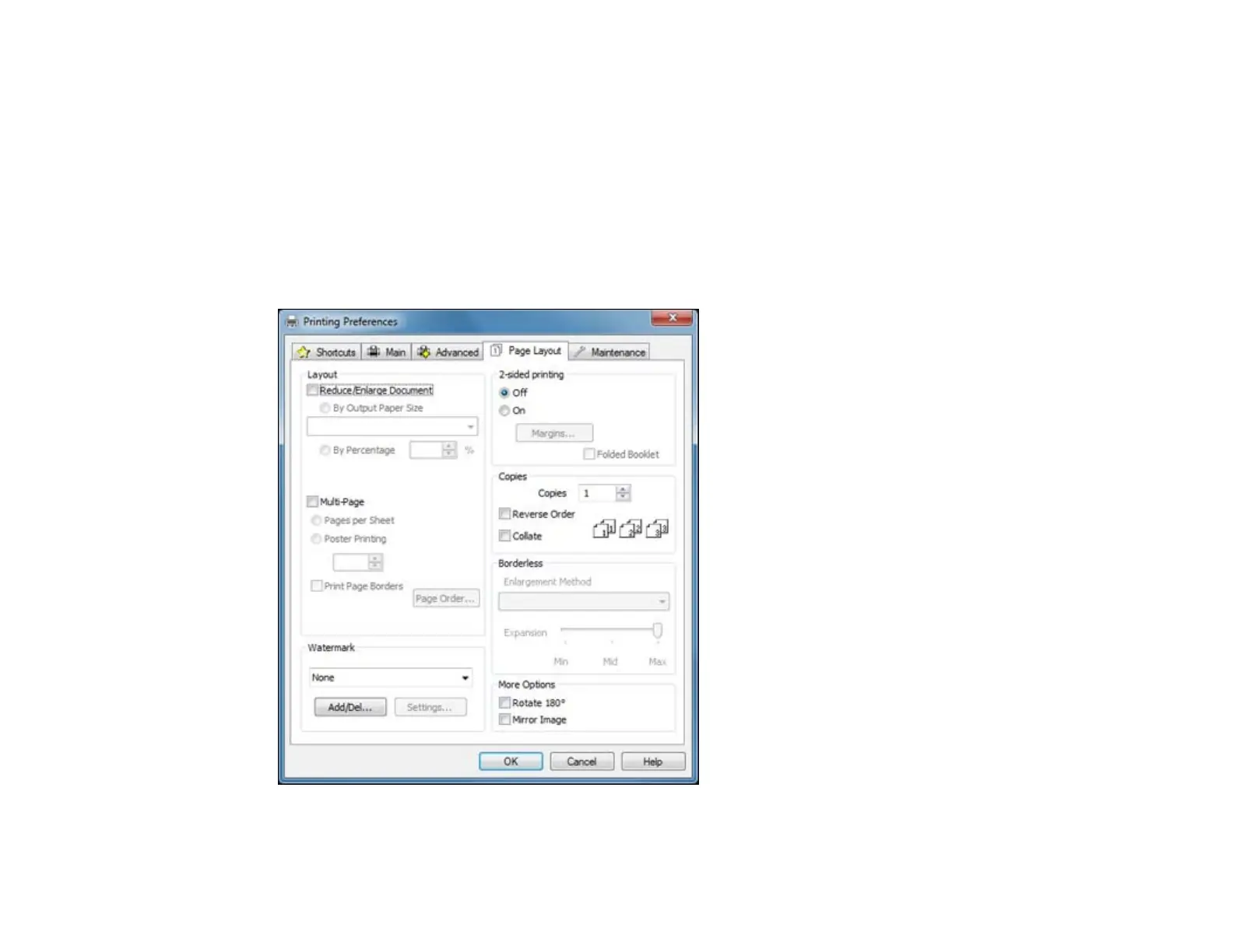 You can select a variety of sizing and layout options for your document or photo on the Page Layout tab.