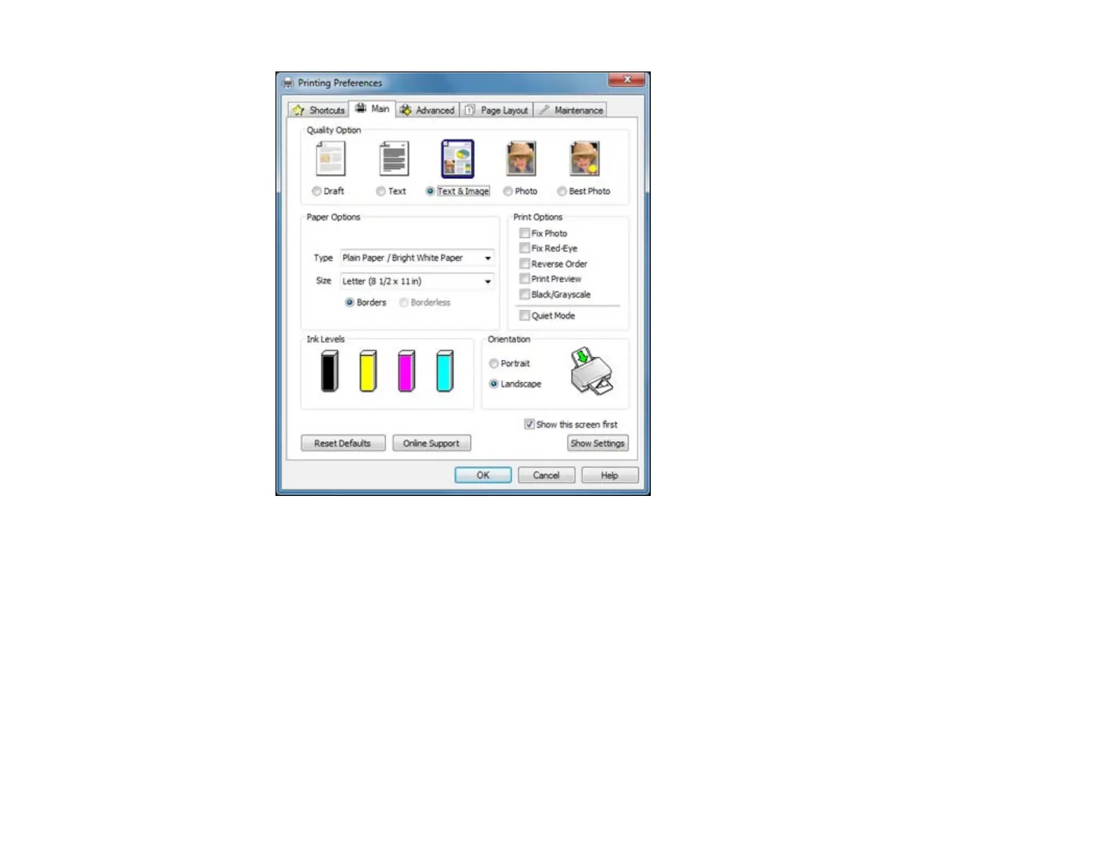 3. Select the print settings you want to use as defaults in all your Windows programs.