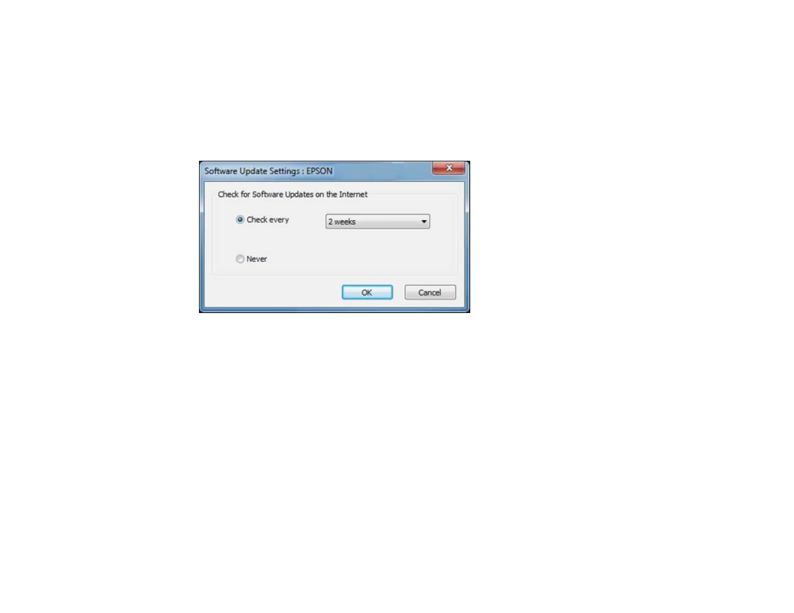 • To change how often the software checks for updates, select a setting in the Check every menu.