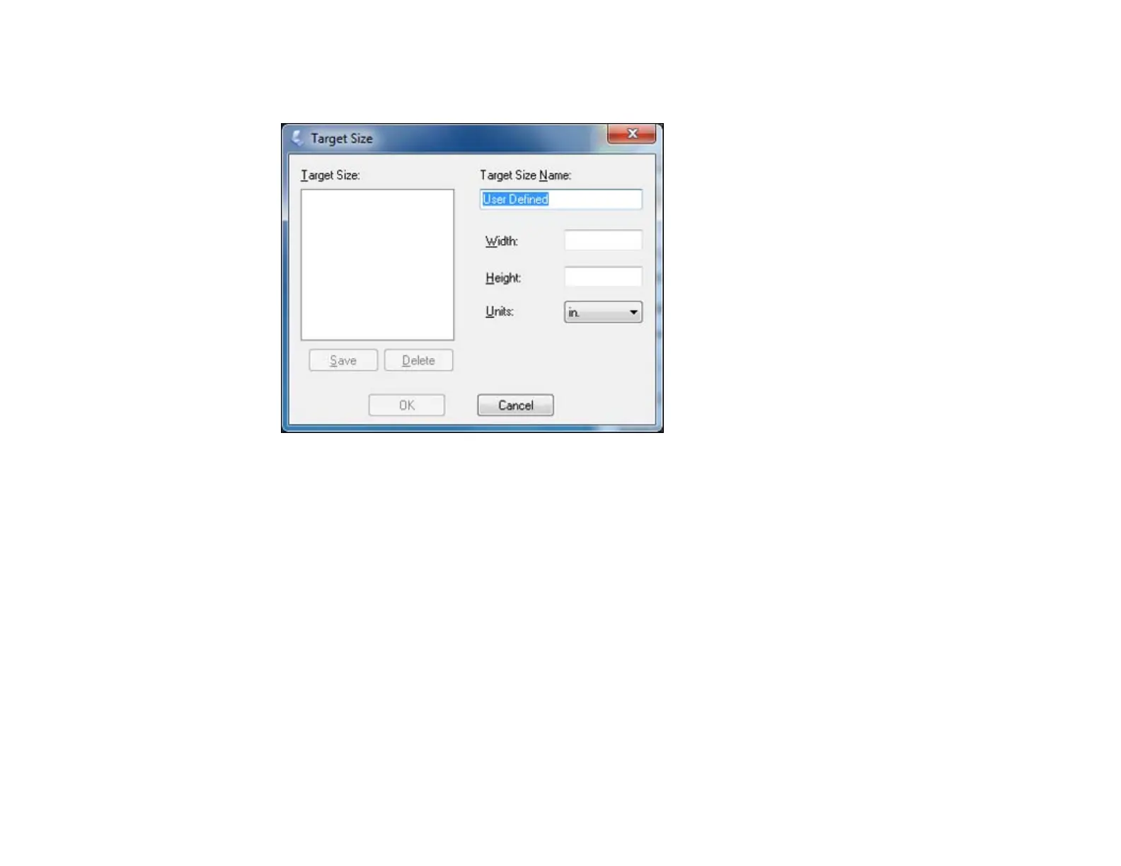 4. To create a scanned image size that is not available in the Target Size list, click the Customize