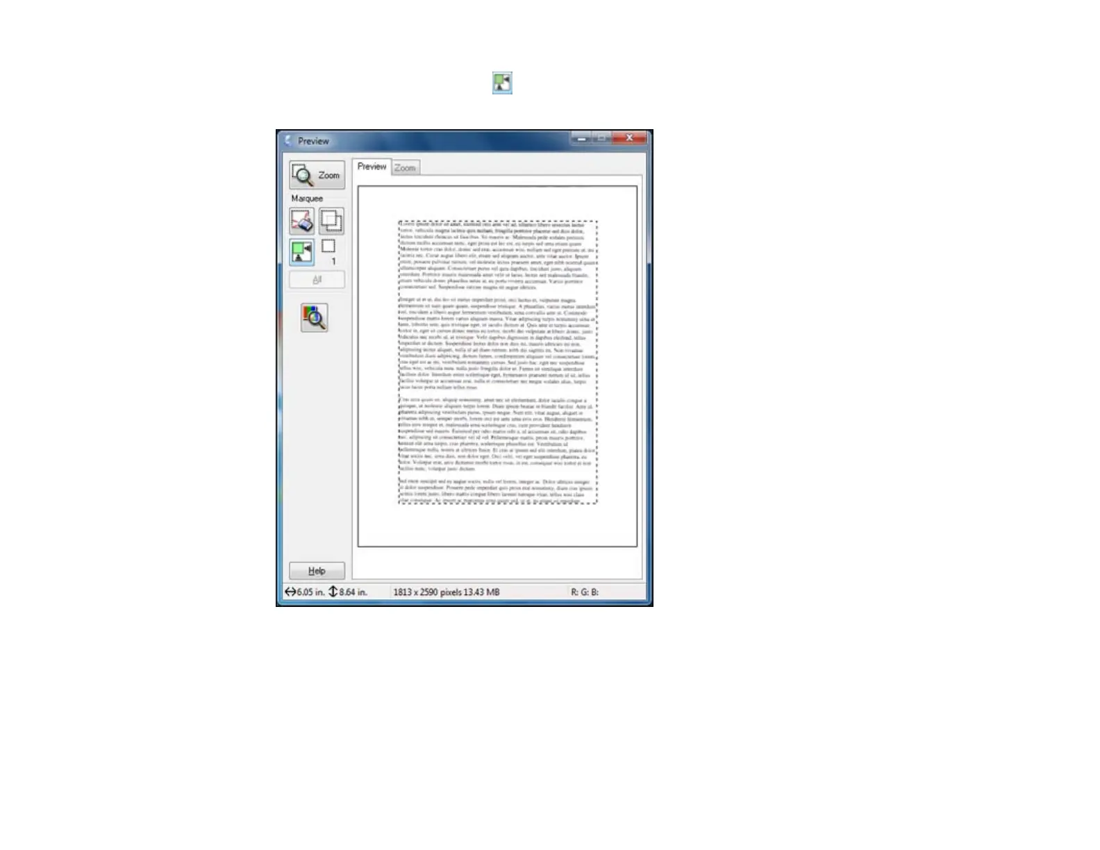 1. In the Preview window, click the Auto Locate icon to create a marquee (dotted line) on the