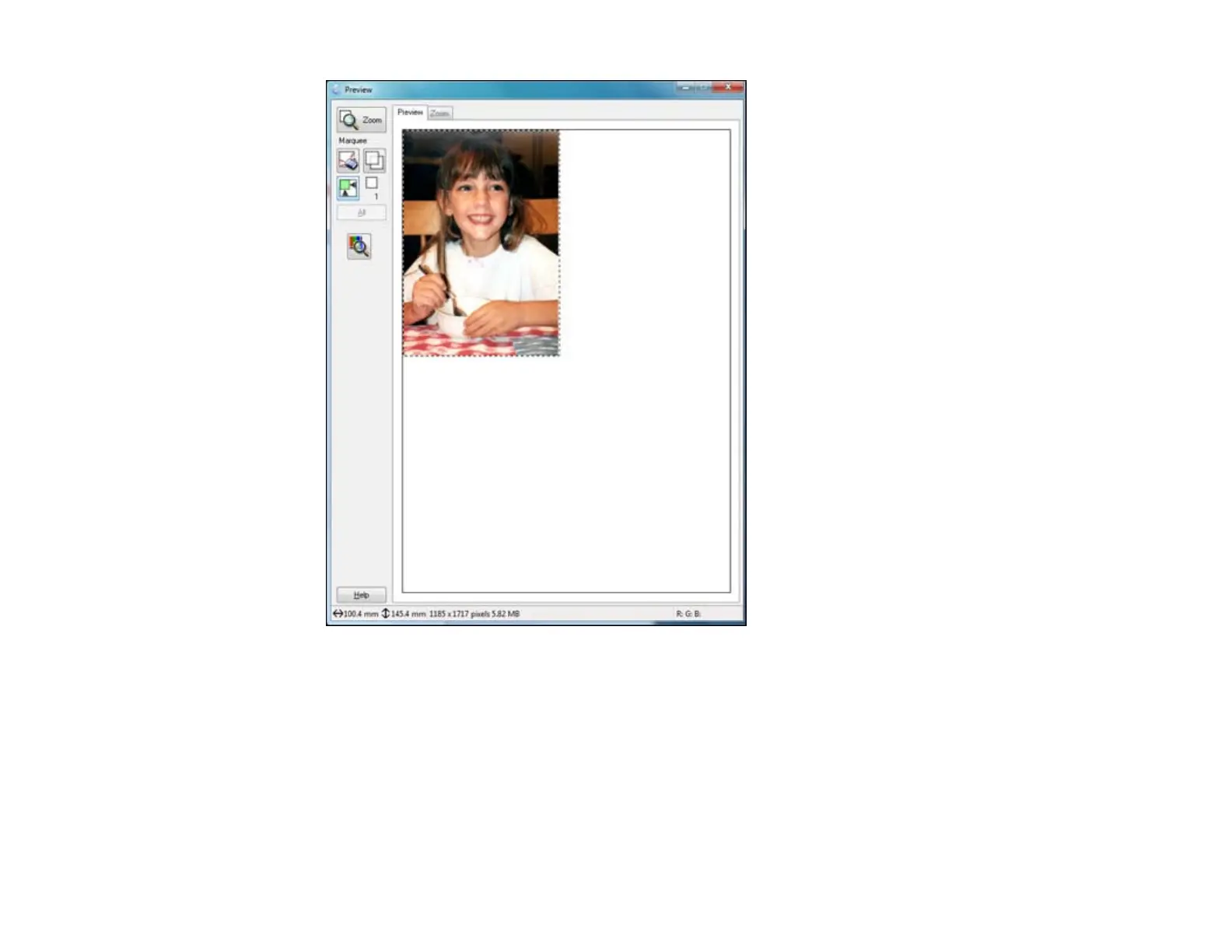 Thumbnail preview: Your scan area is selected automatically, but you can change it. Place your