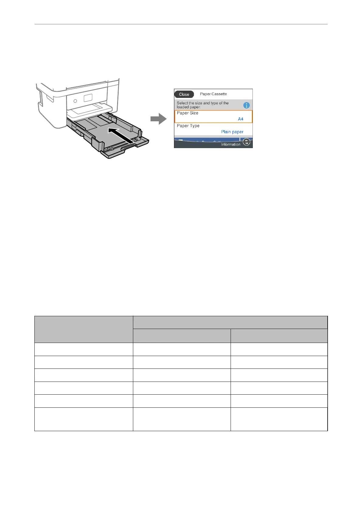 If the paper size and type displayed dier from the loaded paper, select the item you want to change. If the settings