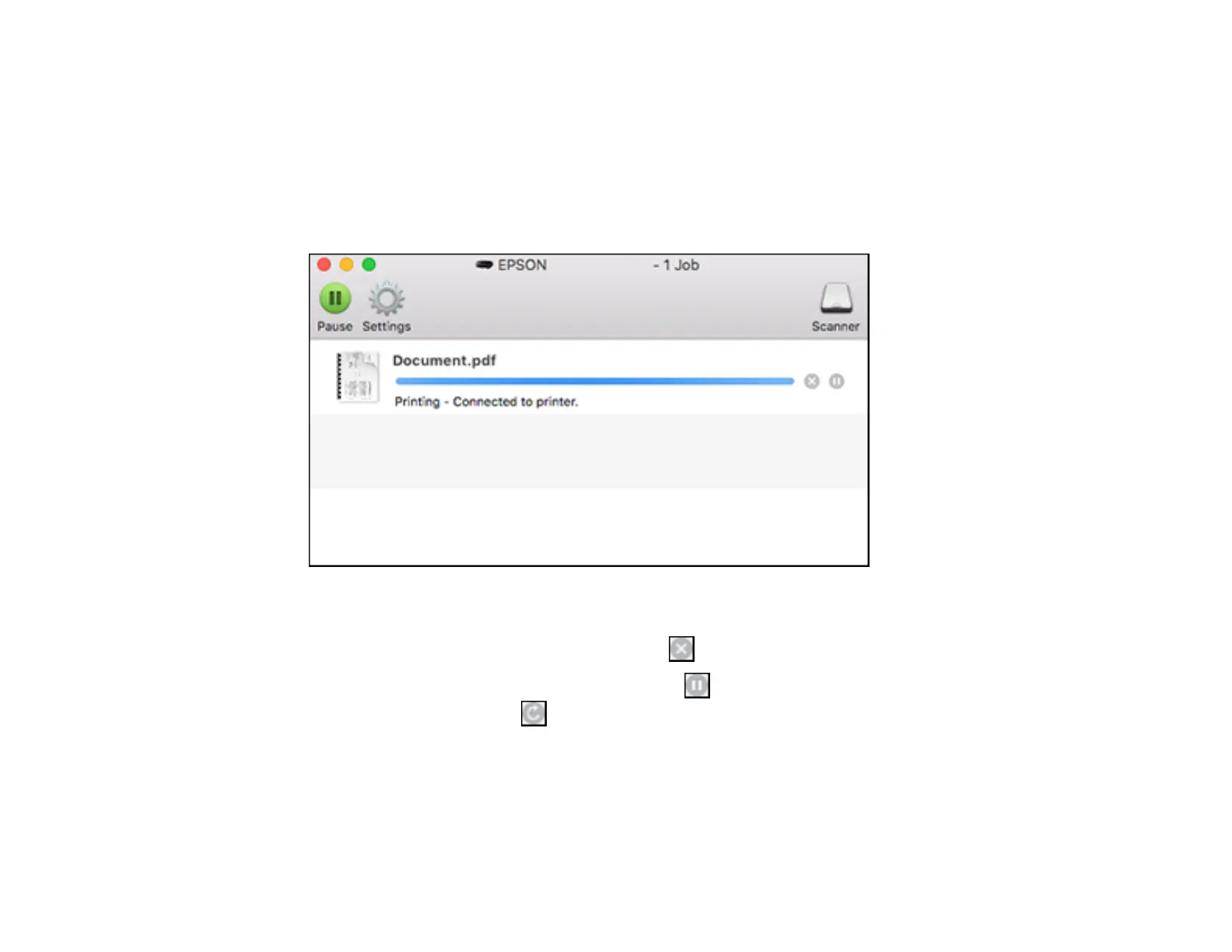 • To pause a print job, click the print job and click or Hold. To resume a print job, click the