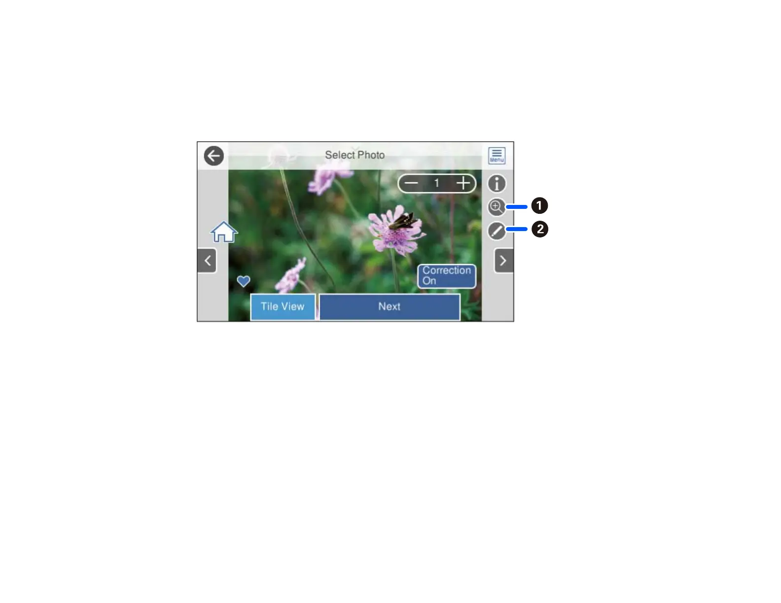 Correction On selected, any corrections you make to a photo are displayed on the screen. With