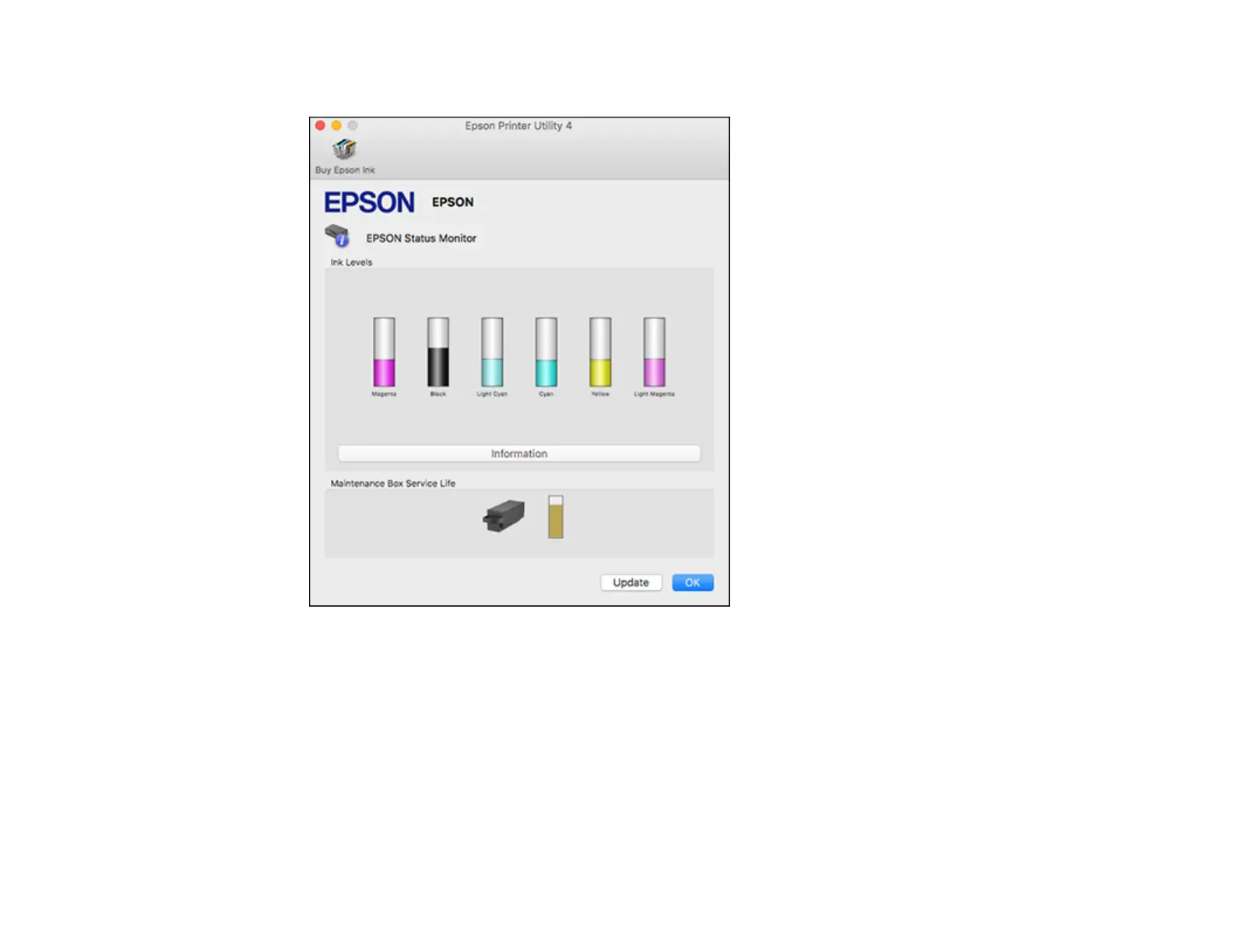 • You can update the ink cartridge and maintenance box status by clicking Update.