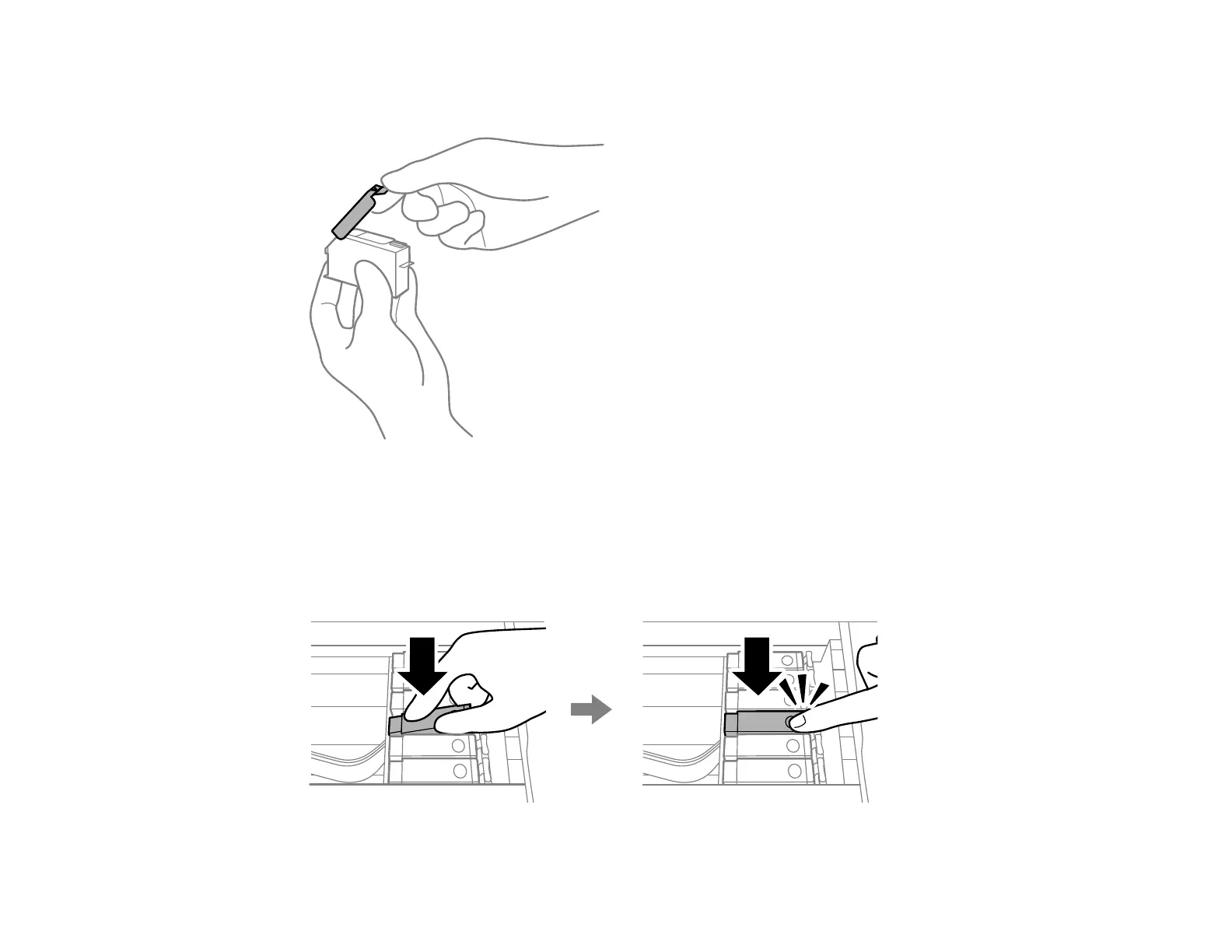 Caution: Do not remove any other labels or seals, or the ink cartridge may leak or become