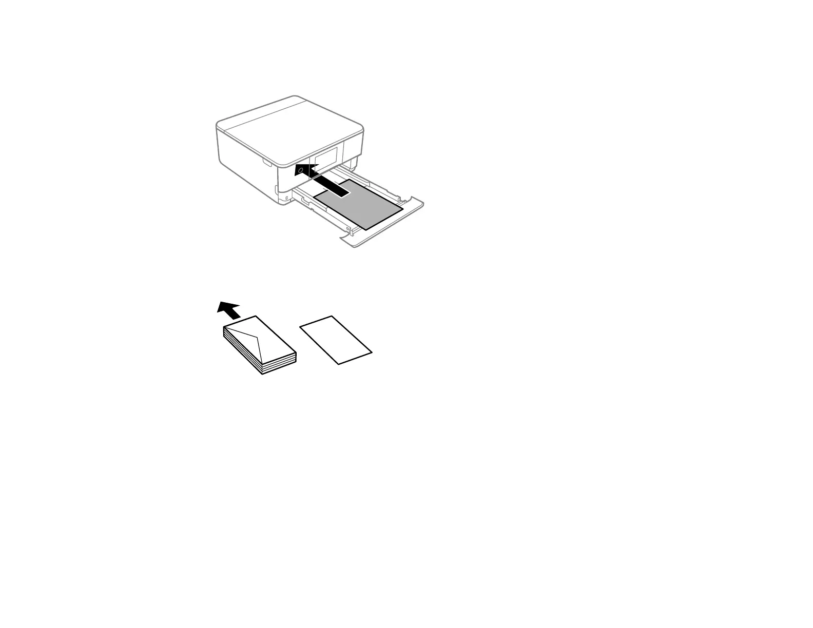 Insert up to 10 envelopes, printable side down and flap edge left, as shown.