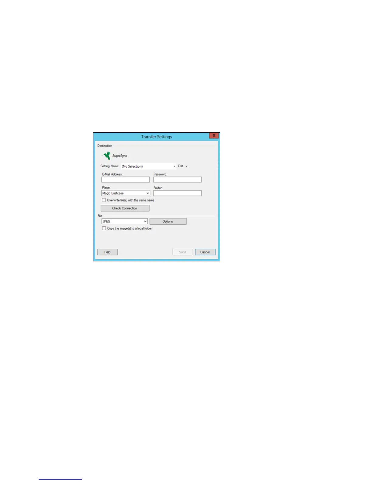 Note: If you have already configured a SugarSync account in Easy Photo Scan, you can select the