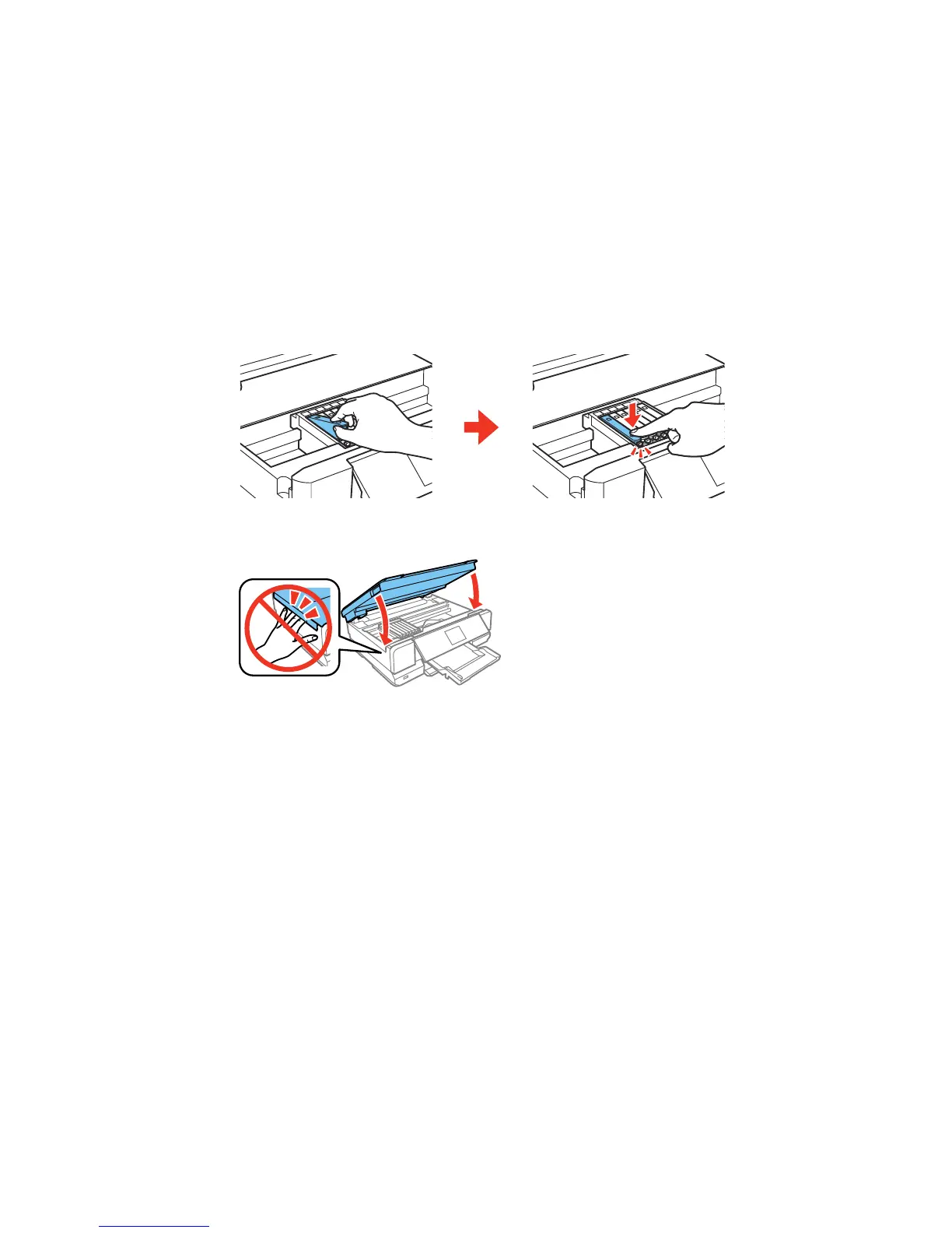8. Insert the ink cartridge head first into the ink cartridge holder. Then press the bottom of the ink