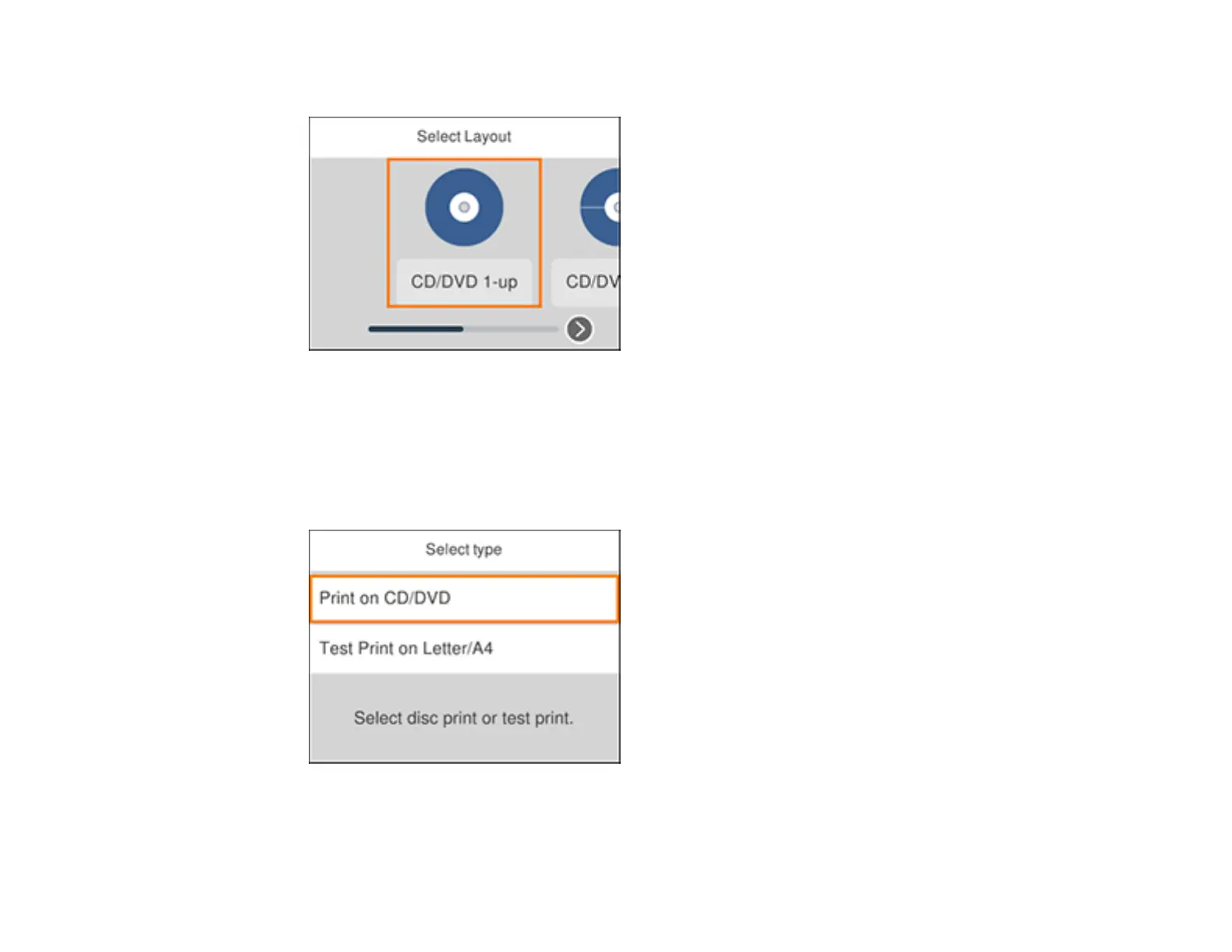 8. Select one of the options shown on the screen and press the OK button. If printing a test print on