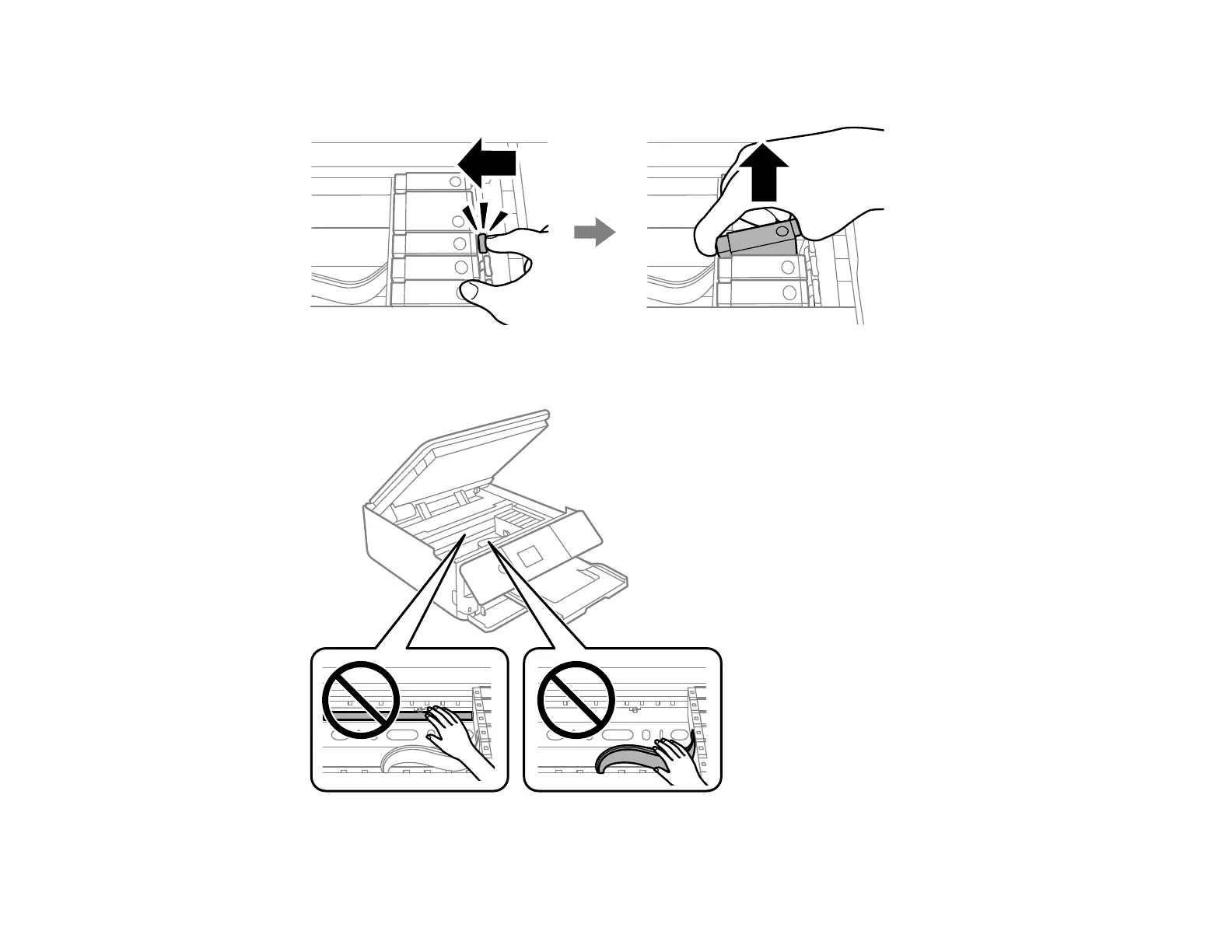 4. Squeeze the tab on the cartridge and lift the cartridge straight up to remove it.