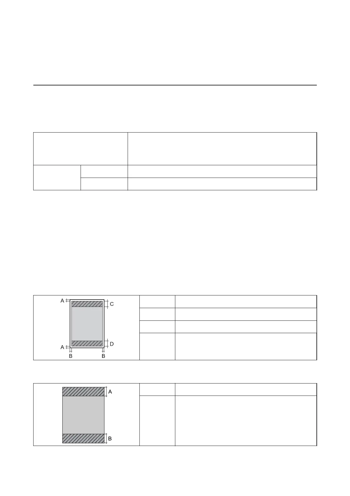 Print quality may decline in the shaded areas due to the printer's mechanism.
