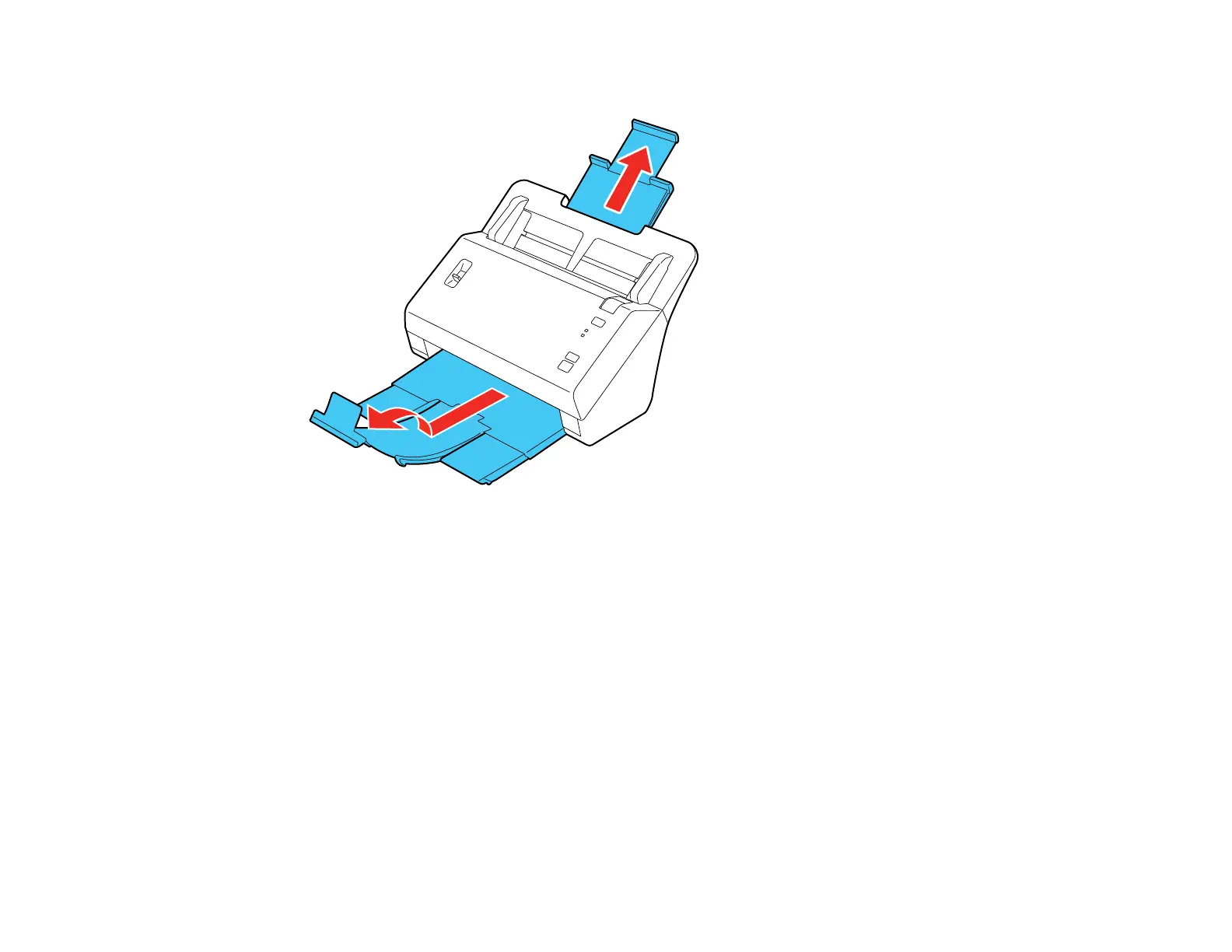 1. Pull up the input tray extension, extend the output tray, and flip up the stopper.