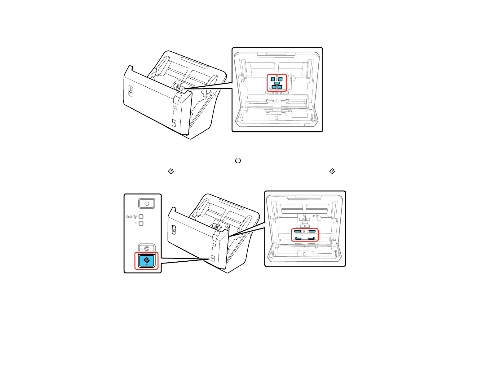 rotate the rollers shown here. Wipe off any dust or dirt on the rollers as they rotate.