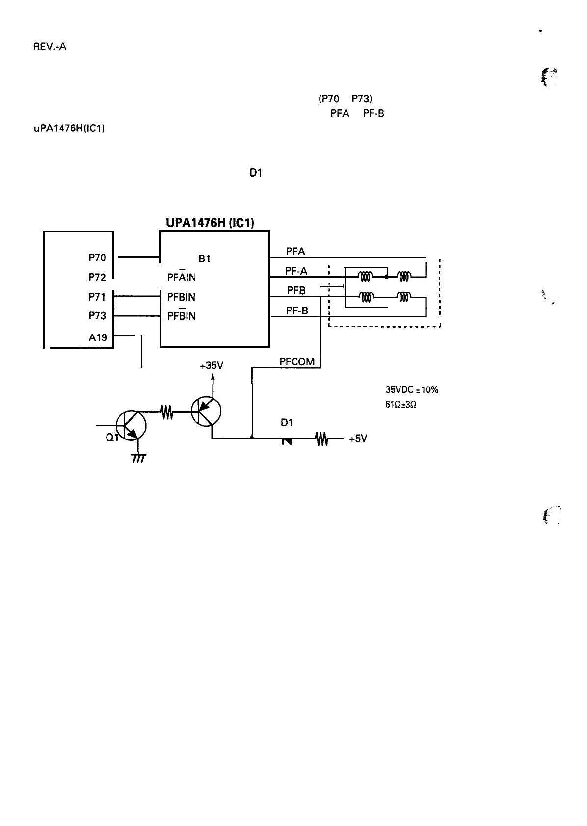 When there is an output at A19 of the CPU, a +35 V voltage is supplied to the PFCOM terminal of the PF motor.