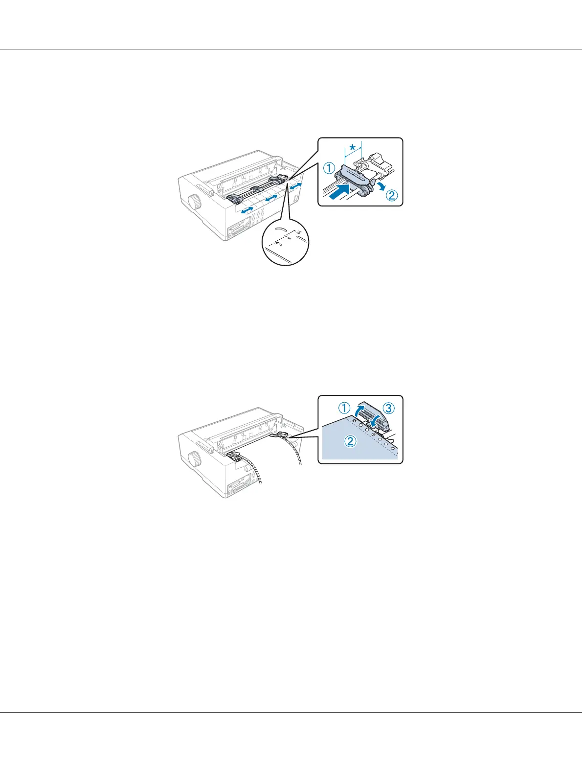 8. Slide the right sprocket to remove any slack in the paper; then lock it in place by pushing the blue