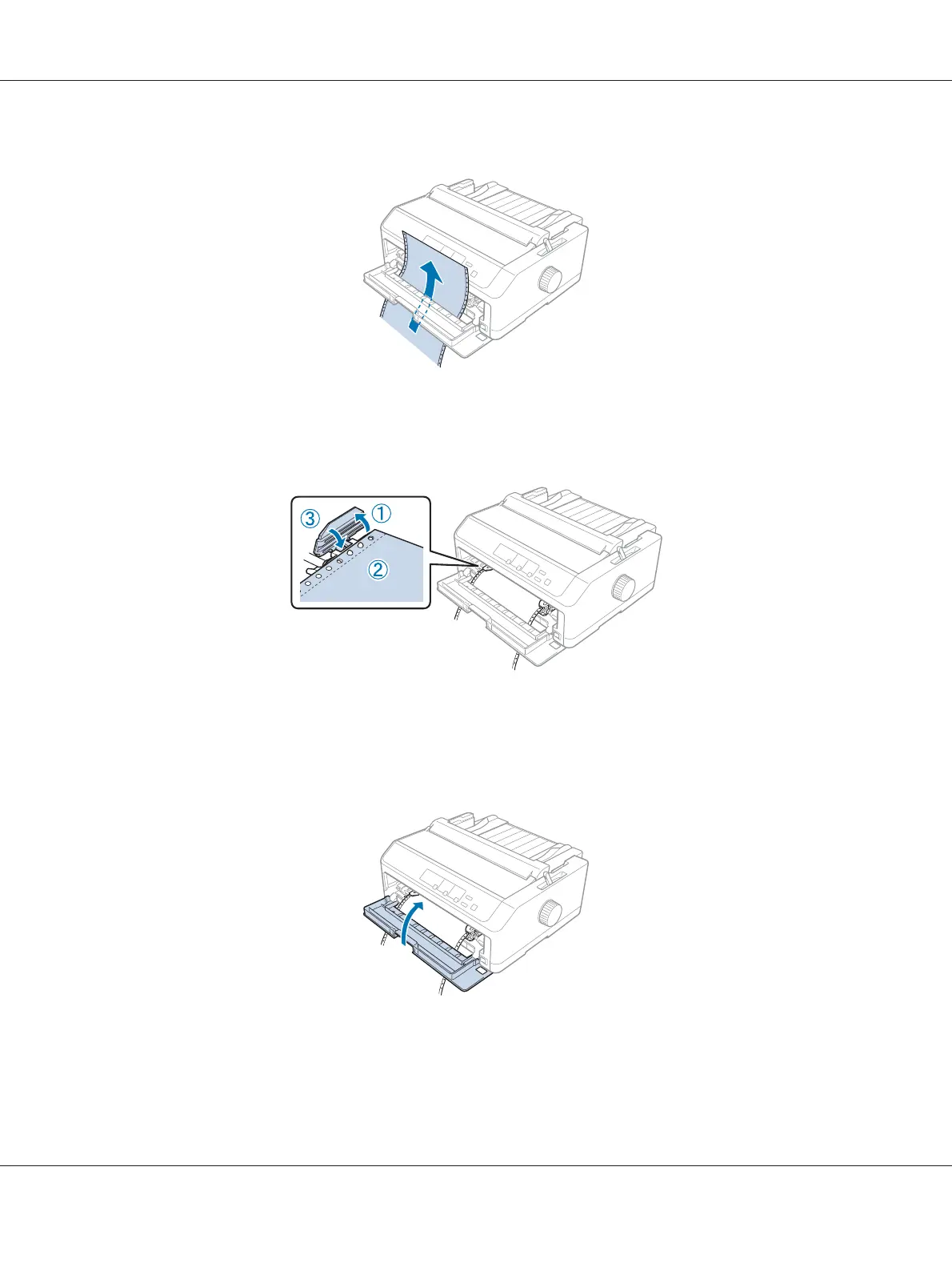 10. Close the front cover with the continuous paper positioned as shown below.