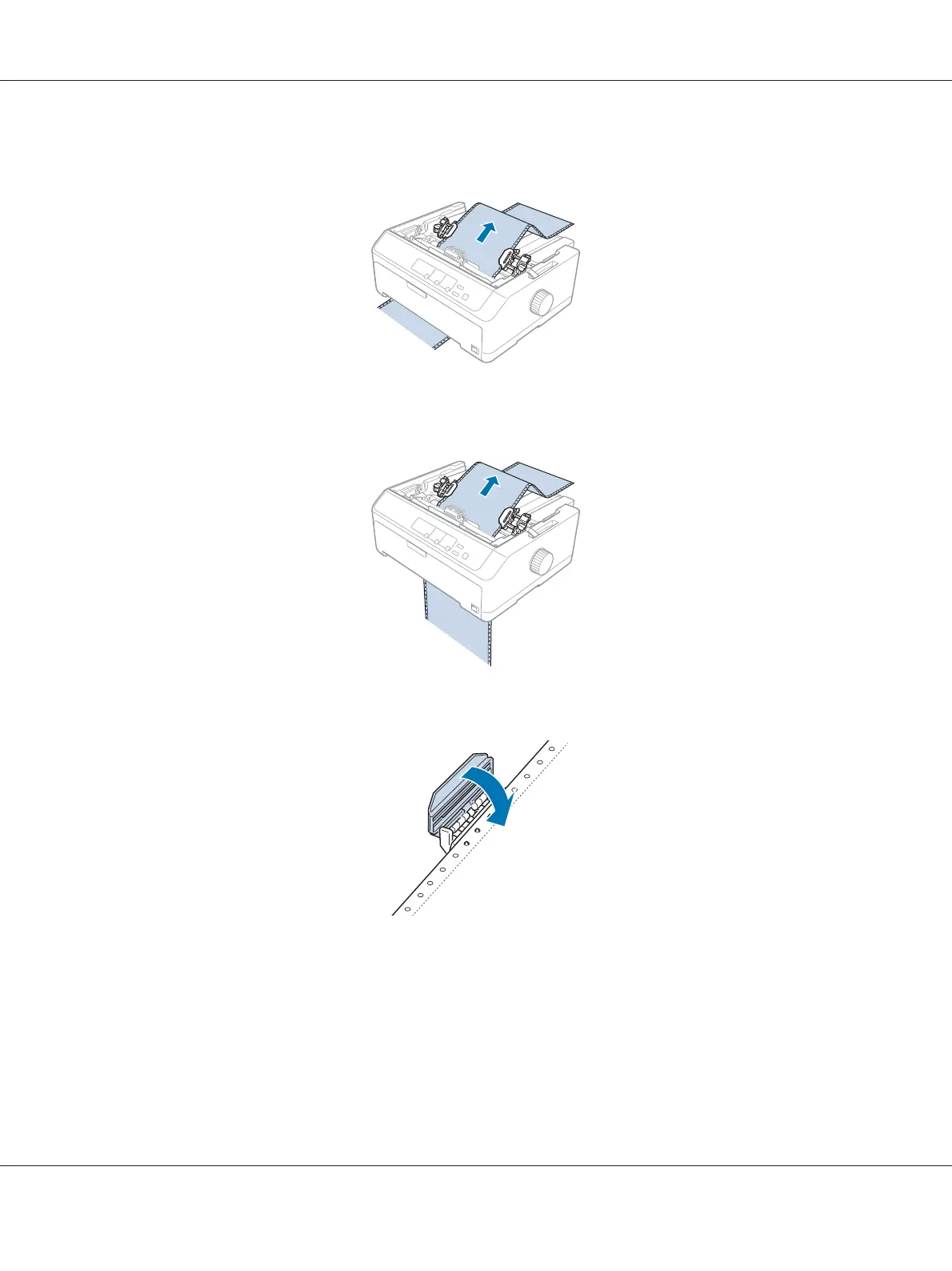 7. Fit four holes of the paper over the tractor pins on both sprockets. Then close the sprocket covers.