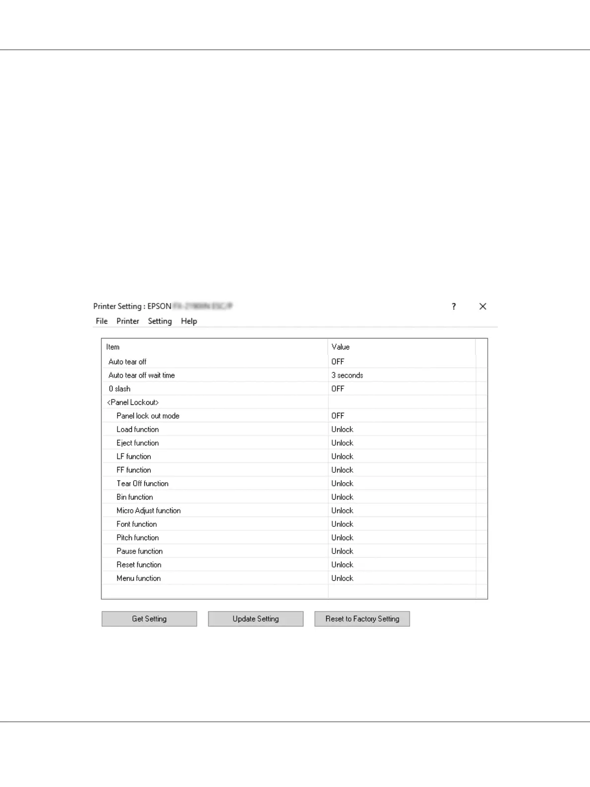 ❏ Make sure that the printer status is ready before getting setting from the printer or updating the