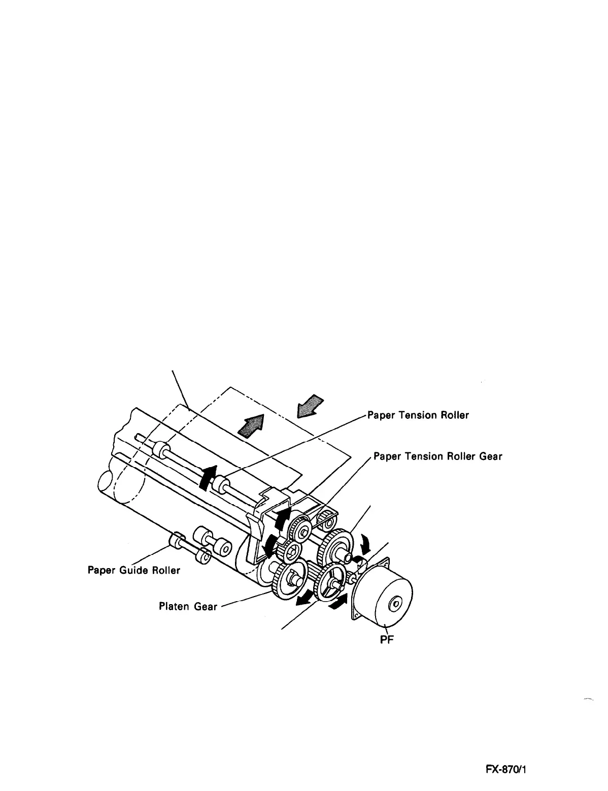 and paper tension unit cover.The paper feed (PF) motor pinion gear, turning in the direction of