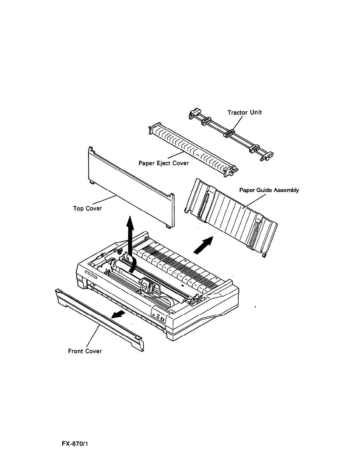 Remove the paper guide assembly, ribbon, top cover, front cover, paper eject cover, and tractor